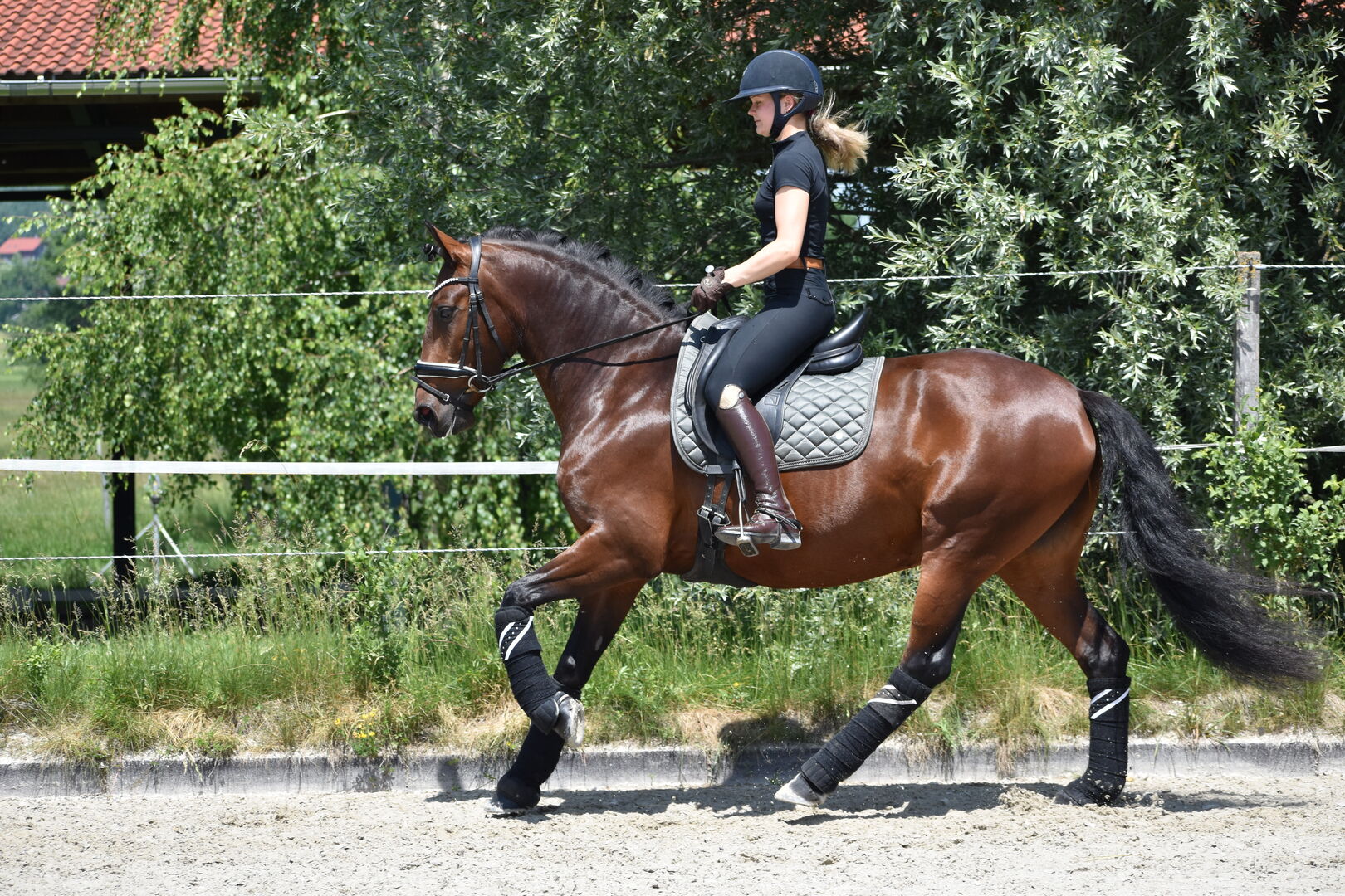 Piękna ujeżdżona 5-letnia klacz Lusitano na sprzedaż! Wolna od piro! - Rosa da Hermida to klacz Lusitano prosto z książki z obrazkami. Piękna, zwariowana - okrągła jak piłka, już w wieku zaledwie 5 lat zapewnia jeźdźcowi fantastyczne wrażenia z jazdy. Jej słynny dziadek "Rubi" z pewnością wyposażył ją w trzy doskonałe podstawowe chody, Rosa sprawia, że serce każdego jeźdźca bije szybciej. Jest bardzo miękka w dosiadzie i łatwa w obsłudze. Została łagodnie wdrożona i jest obecnie czule i wszechstronnie trenowana. Jeździ cross, skoki wolne, skoki z jeźdźcem i już wykazuje talent do piaffu i przejścia pod siodłem z lotnymi zmianami. Charakter tej klaczy jest trudny do pobicia, a jej obsługa to absolutny skarb. Nie ma żadnych trudności w codziennej obsłudze - spacery po padoku z różnymi partnerami, mycie, kowal, jazda w przyczepie, wiązanie, wyjazdy - wszystko jest dla Rosy oczywiste. Absolutny koń marzeń - Piro free-. Rosa jest obecnie w treningu w Niemczech w pobliżu Weilheim w Górnej Bawarii. W przypadku zakupu może jednak zostać wcześniej przywieziona do Szwajcarii. Na drugim filmie Rosa jest dosiadana przez 11-letnią dziewczynkę, co odzwierciedla jej wspaniałe wnętrze.