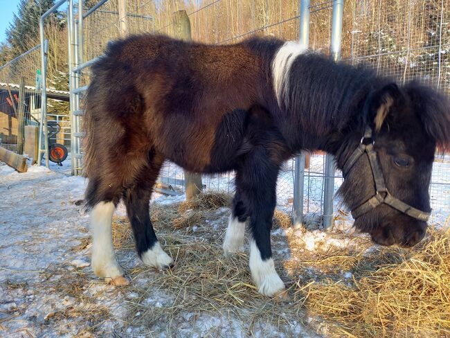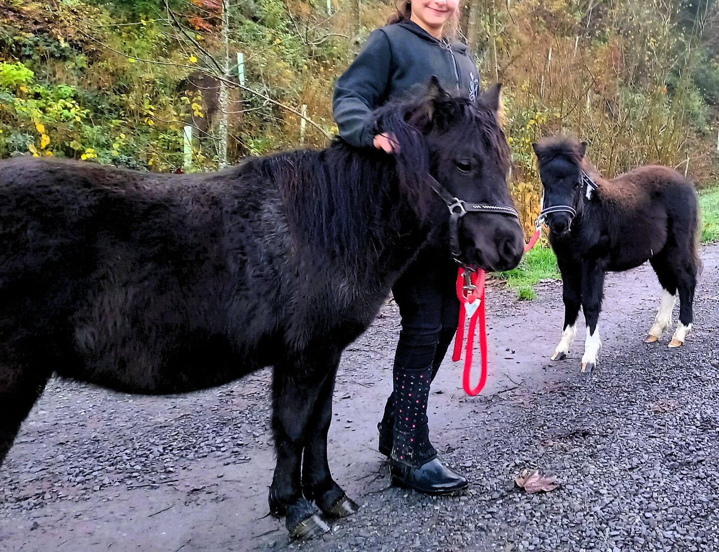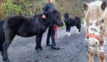 Piękna, urocza klacz rasy American Mini Horse (6yo) szuka domu - Z ciężkim sercem sprzedajemy naszą piękną 6-letnią, czarną, czystej krwi amerykańską klacz "Surprise" (wzrost 95 cm), bardzo słodką w obsłudze, przyzwyczajoną do dzieci, jeżdżoną (siarczyste wyścigi kłusaków), dobry charakter, dobrą do załadunku i bezpieczeństwa w ruchu ulicznym, solidną i zdrową, zaszczepioną, zaczipowaną i odrobaczoną, kopyta przycięte. Surprise jest przyzwyczajona do przebywania na zewnątrz i w grupach z innymi kucykami i małymi końmi. Obecnie ma również odsadzonego źrebaka (ur. 2024), który również jest na sprzedaż. Obie klacze zostaną sprzedane osobno lub razem do miłego miejsca, w którym będą mogły stawić czoła wyzwaniom i cieszyć się odpowiednim dla gatunku życiem na wolnym wybiegu i w grupie. Cena sprzedaży klaczy 3200,- SFr. Cena sprzedaży ogierka 1500,- SFr. Cena sprzedaży obu razem 4500.- SFr. Oba kuce można odwiedzić w Gettnau LU.