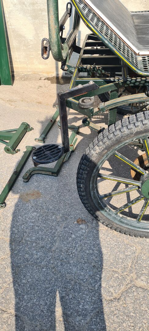 Może być prowadzony przez jednego lub dwa konie. W zestawie znajdują się nożyce i dyszel.