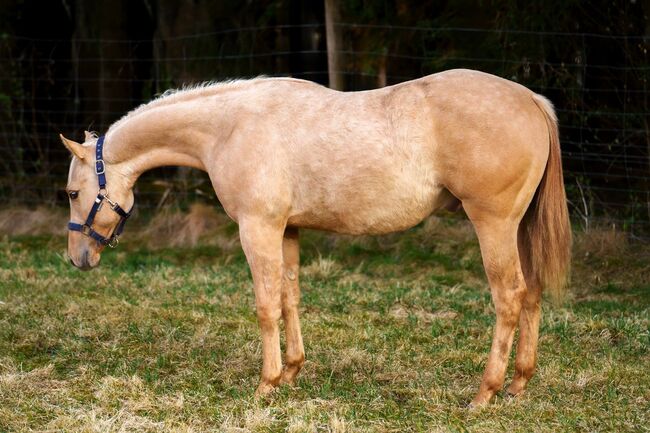 Piękne potomstwo rasy Quarter Horse po Best Spook - Lokalizacja: 38678 Clausthal-Zellerfeld UG Commander Spook - piękny ogier rasy Quarter Horse w specjalnym kolorze Dunalino, urodzony 19 marca 2024 r. Przy szacowanym ostatecznym wzroście od około 150 do 152 cm jest idealny do sportu i rekreacji. Jego zwarta, prawidłowo zbudowana sylwetka i stabilne proporcje już teraz wskazują na obiecujące perspektywy na przyszłość. Będzie dorastał w mieszanym stadzie wałachów w sposób odpowiedni dla gatunku i będzie mógł dorastać w ciszy i spokoju w najlepszych warunkach. Spook jest zdrowy, zaszczepiony jak na swój wiek i regularnie odrobaczany. Jego charakter jest absolutnie uroczy: zorientowany na ludzi, przyjazny, otwarty i bardzo chętny do nauki. Jest uważny na nowe sytuacje, ale zawsze pozostaje dobrze wychowany i nieskomplikowany. Opanował źrebię 1x1 i jest już wyszkolony w halterze. Dzięki doskonałemu rodowodowi reiningowemu ma najlepsze warunki do późniejszej kariery w sporcie lub zawodach, ale równie dobrze nadaje się do wszechstronnego użytku rekreacyjnego. Jego ojcem jest licencjonowany i utytułowany ogier QH Best Sook. Matką Spooka jest córka Dun It On The QT. Jest już opłacony w programie dla młodych koni NRHA i EWU, a zatem stanowi świetną inwestycję w młodego konia z przyszłością. UG Commander Spook łączy w sobie wygląd, charakter i osiągi.