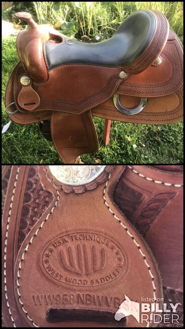 Piękne westernowe siodło od Westwood - Piękne krzesło Westwood z podwójnym obramowaniem, miękkie siedzisko, niezwykle wygodne, 16 cali, kolor miodowy z lekkim antycznym wykończeniem.