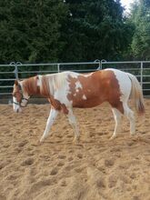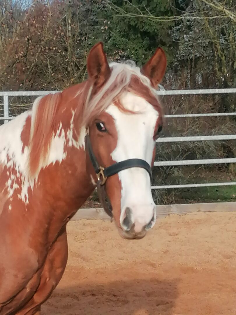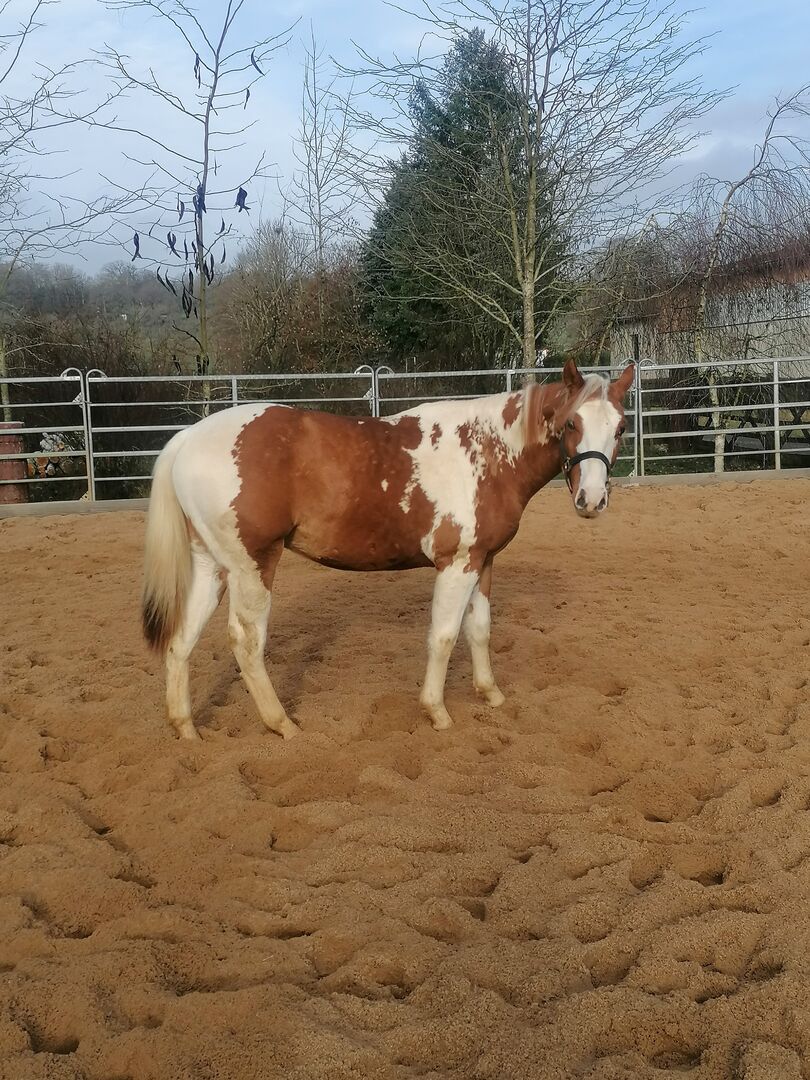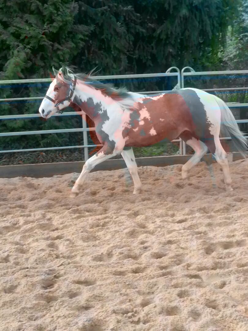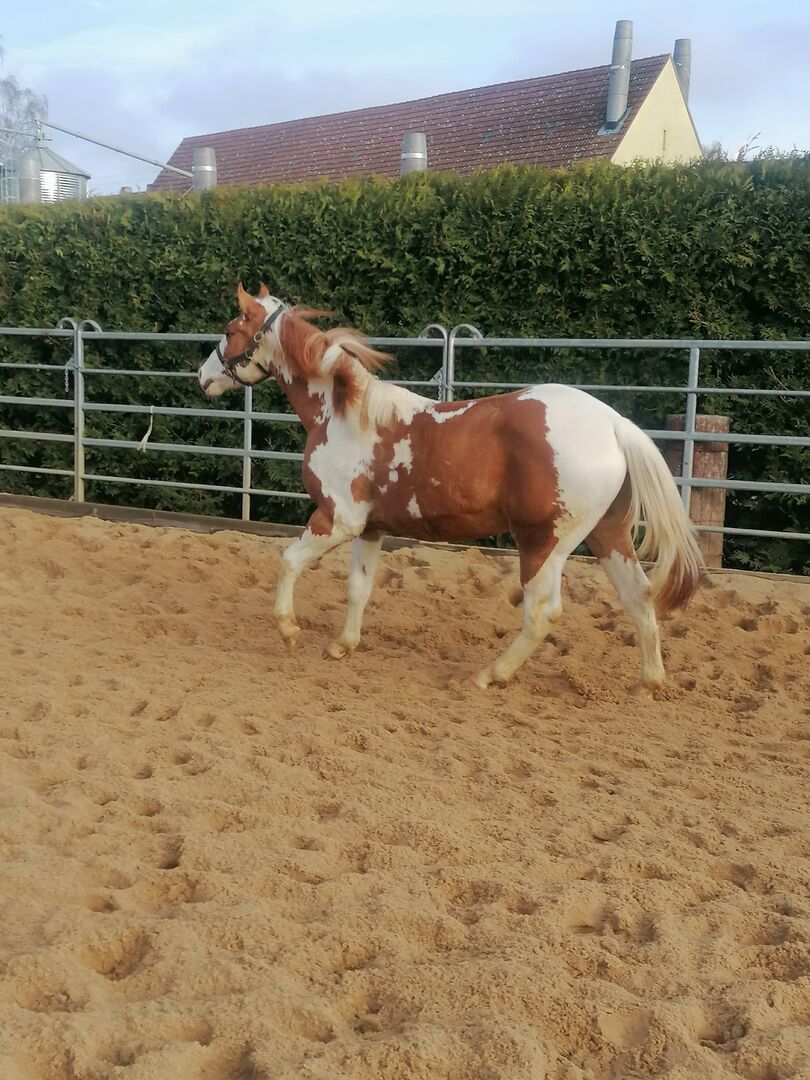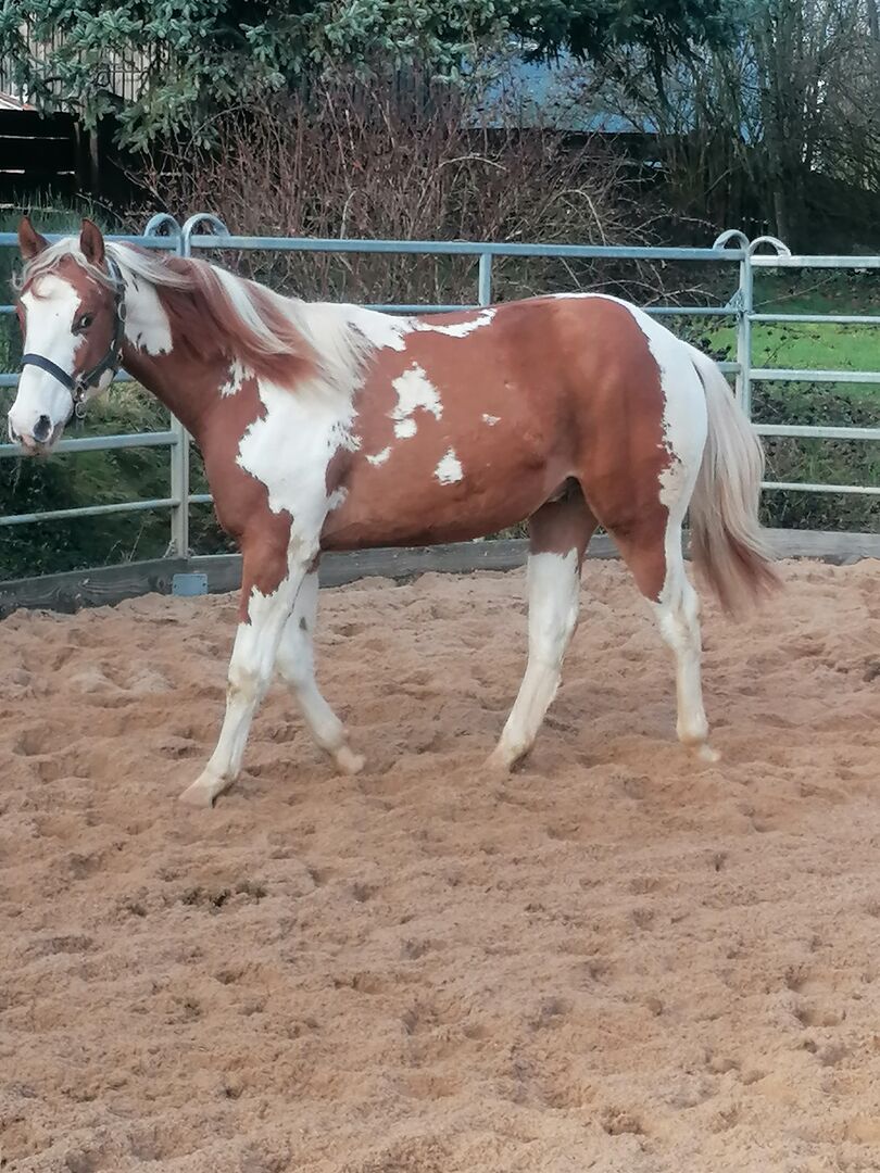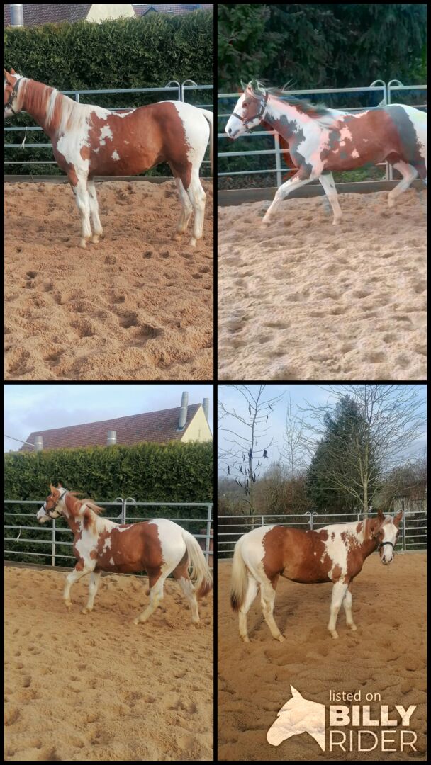 Piękny 1,5 roczny Painthengst! - Szukamy ładnego nowego domu dla naszego 1,5 rocznego ładnego Paint, Sorrel Tovero, super pięknego pod względem oznaczeń, koloru i budowy, ponieważ pochodzi z krycia Grullo z oznaczeniami węgorza i specjalnym kolorem, z odpowiednimi ludźmi, którzy rozumieją konie. Flying Smart O'Lena mieszka z nami w otwartej stajni, jest dobrze zsocjalizowany, dobrze się prowadzi, zna wodę, ruch uliczny, jest lonżowany i uwielbia być pielęgnowany, prowadzony i pielęgnowany przez dzieci. Ma ok. 150 cm wzrostu, długą grzywę, stabilną budowę i mocne kości. Wspaniały koń dla dzieci, młodzieży i dorosłych, który świetnie sprawdzi się w rekreacji, western, jeździe ranczerskiej i trailowej. Niestety musimy się z nim rozstać z powodów zdrowotnych! Jest zarejestrowany w PHCG, 5 panelowy test, paszport Eu, czipowany, rejestracja APHA. Pochodzi z linii reiningowej, cuttingowej, Smart Little Lena z obu stron na papierze. Regularnie odrobaczane, szczepione, kopyta w porządku. Zdjęcia zostaną opublikowane, również zapytania za pośrednictwem whattsapp. Kontakt również za pośrednictwem opiekunów ayers rock dot de.