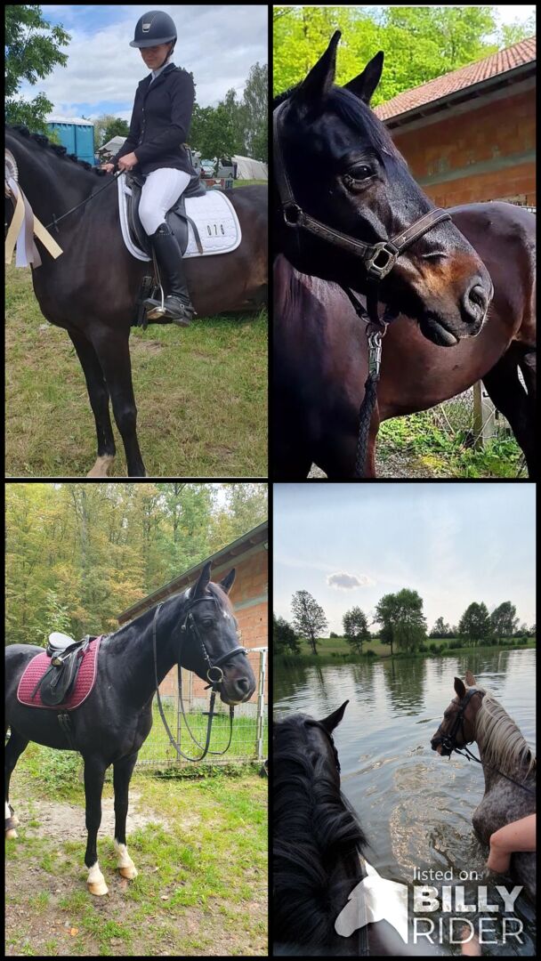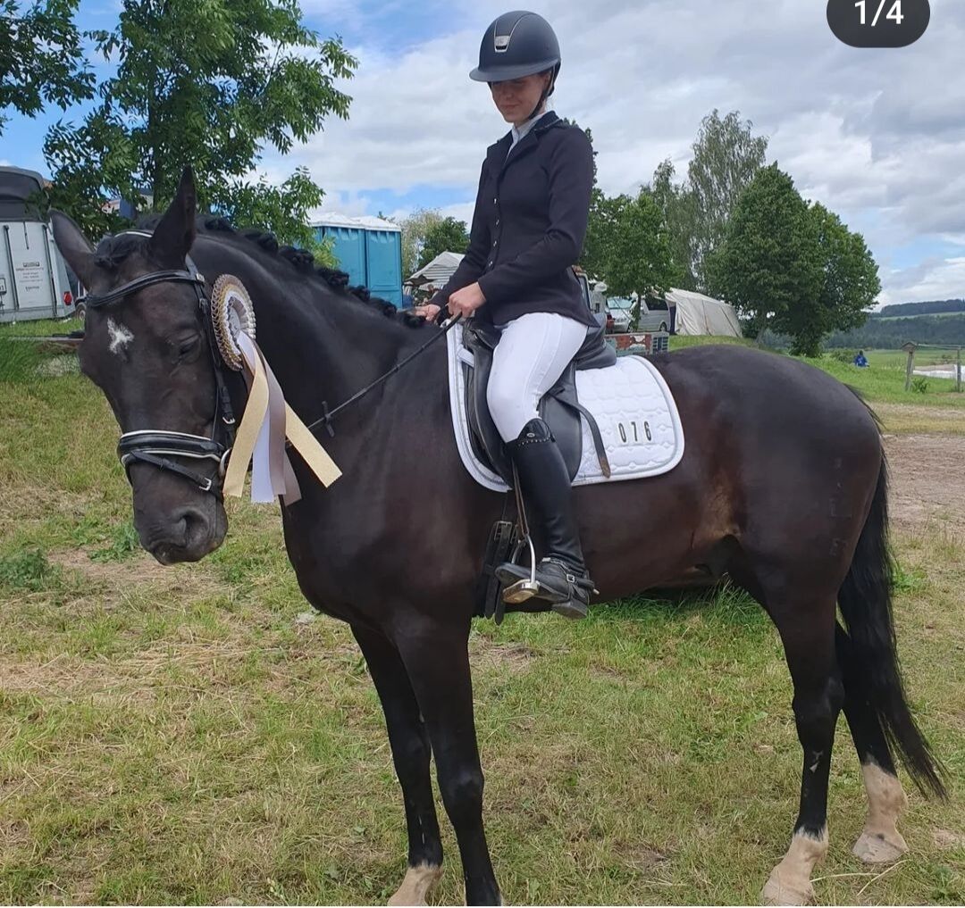 Piękny czarny koń - Nasz piękny czarny koń rasy Mecklenburg Warmblood szuka nowego i kochającego domu. Kupiłam go z drugiej ręki. W tym czasie był jeszcze bardzo niespokojny i płochliwy. Udało mi się to prawie całkowicie przezwyciężyć dzięki dużej pracy nad zaufaniem. W wieku 11 lat jest super sprawny, ma 165 metrów wzrostu, jest bardzo słodki i czuły i bardzo dobrze dogaduje się z innymi końmi. W krótkim czasie C. zdobył również doświadczenie na arenie, w hali, w crossie i w mniejszych zawodach WBO w ujeżdżeniu. Lubi jeździć zarówno sam, jak i z innymi końmi, lubi pracę na drążku i z ziemi, szybko przyzwyczaja się do nowych rzeczy i jest bardzo miły pod siodłem. C. posiada czerwony paszport konia z dowodem rodowodu. Akcesoria takie jak siodło ujeżdżeniowe Możliwość dokupienia siodła ujeżdżeniowego, podkładki pod siodło, derki, uzdy, kantara itp. W razie dalszych pytań jestem do Państwa dyspozycji. LG