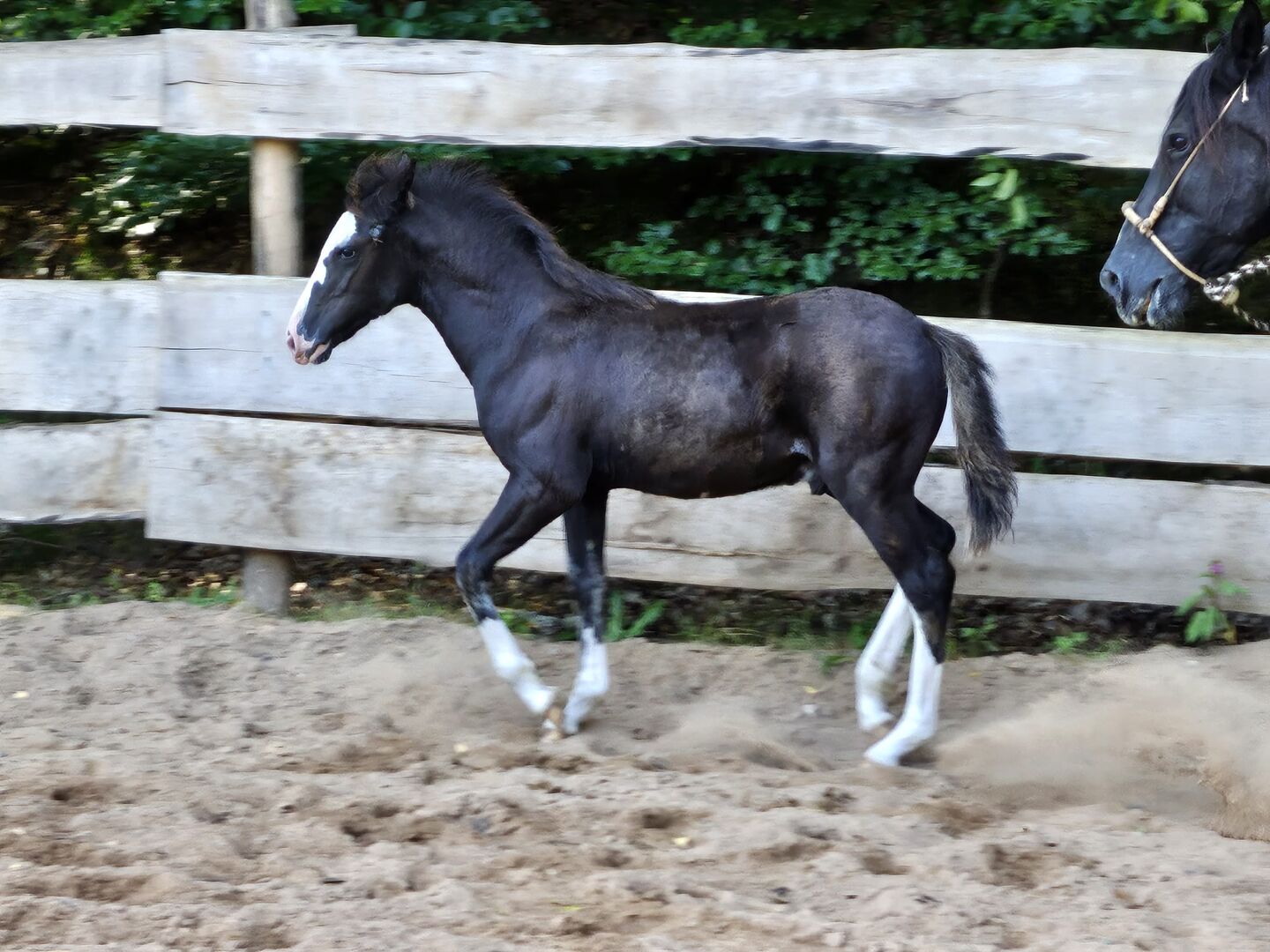 Piękny, jasny ogierek Criollo - Lokalizacja: 63911 Klingenberg am Main Sita De Bandit - piękny, dobrze zbudowany ogierek Criollo, urodzony 4.2024 r., o szacowanej ostatecznej wysokości 150 cm. Ten mały pakiet radości zachwyca wspaniałym kolorem, dobrą, mocną budową i żywym, jasnym wyglądem. Bandit ma papiery z Heskiego Związku Hodowlanego i dobry rodowód. Jego dziadek ze strony ojca, La Amanecida el Halieto, jest jedynym ogierem Criollo w Europie, który pomyślnie przeszedł próbę dzielności w NCHA Cutting Open. Jego dziadkiem ze strony matki jest Negro Nostalgioso, jedyny elitarny ogier w dywizji Criollo w Niemczech. Licencjonowany i zarejestrowany w Księdze Ogierów 1. Był z powodzeniem pokazywany. Źrebak ma towarzyski charakter i wykazuje zainteresowanie wszystkim. Jest obyty i zna źrebięce ABC, gdy jest przekazywany. Bandit już teraz pokazuje bardzo przyziemne ruchy. Z pewnością będzie wszechstronny w przyszłości. Obecnie dorasta z innymi źrebakami w stadzie i można go obejrzeć w dowolnym momencie.