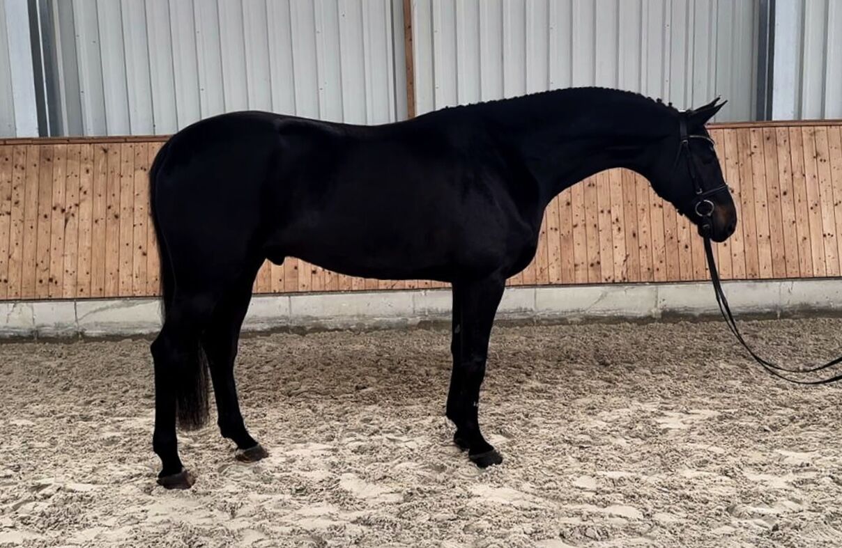 Piękny młodzieniec do jazdy z wielkim charakterem - Piękny czarny wałach z doskonałym GGA i najlepszymi właściwościami jezdnymi. Fiomicino przyciąga uwagę nie tylko swoją niezwykłą budową i błyszczącą czarną sierścią, ale także swoim najlepszym charakterem, który znajduje odzwierciedlenie w jego dużych łabędzich oczach. Mimo młodego wieku, Fiomicino zawsze ma mocne nerwy i dobre serce. Ten przystojny wałach jest również w stanie zdobywać punkty i przekonać wszystkich sędziów swoim opanowaniem i umiejętnością łatwego poruszania się na zawodach. Zarówno załadunek, jak i fryzowanie traktuje jak każdą inną rzecz w codziennym życiu, z pełnym opanowaniem i spokojem. Jeśli chcesz mieć utalentowanego potomka jako swojego najlepszego przyjaciela, Fio jest odpowiednim koniem dla Ciebie. Dostępne są zdjęcia rentgenowskie bez wyników badań (październik 2022). Fiomicino znajduje się obecnie w pobliżu Berlina, ale transport na cały świat jest oczywiście możliwy.