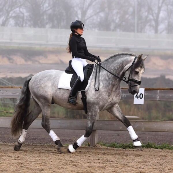 Ebenfalls ist er sehr neugierig, lieb und höflich, sodass der Umgang mit ihm einfach Spaß bringt. Er ist 7 Jahre alt und aktuell 1,65 m groß. Er ist basic geritten, sowohl auf dem Platz, als auch im Gelände, was er auch super lieb mitmacht. In Zukunft können wir ihn uns in vielen Bereichen vorstellen, sowohl in der Dressur, für Working-Equitation, für die Show oder einfach als Freizeitpartner.
