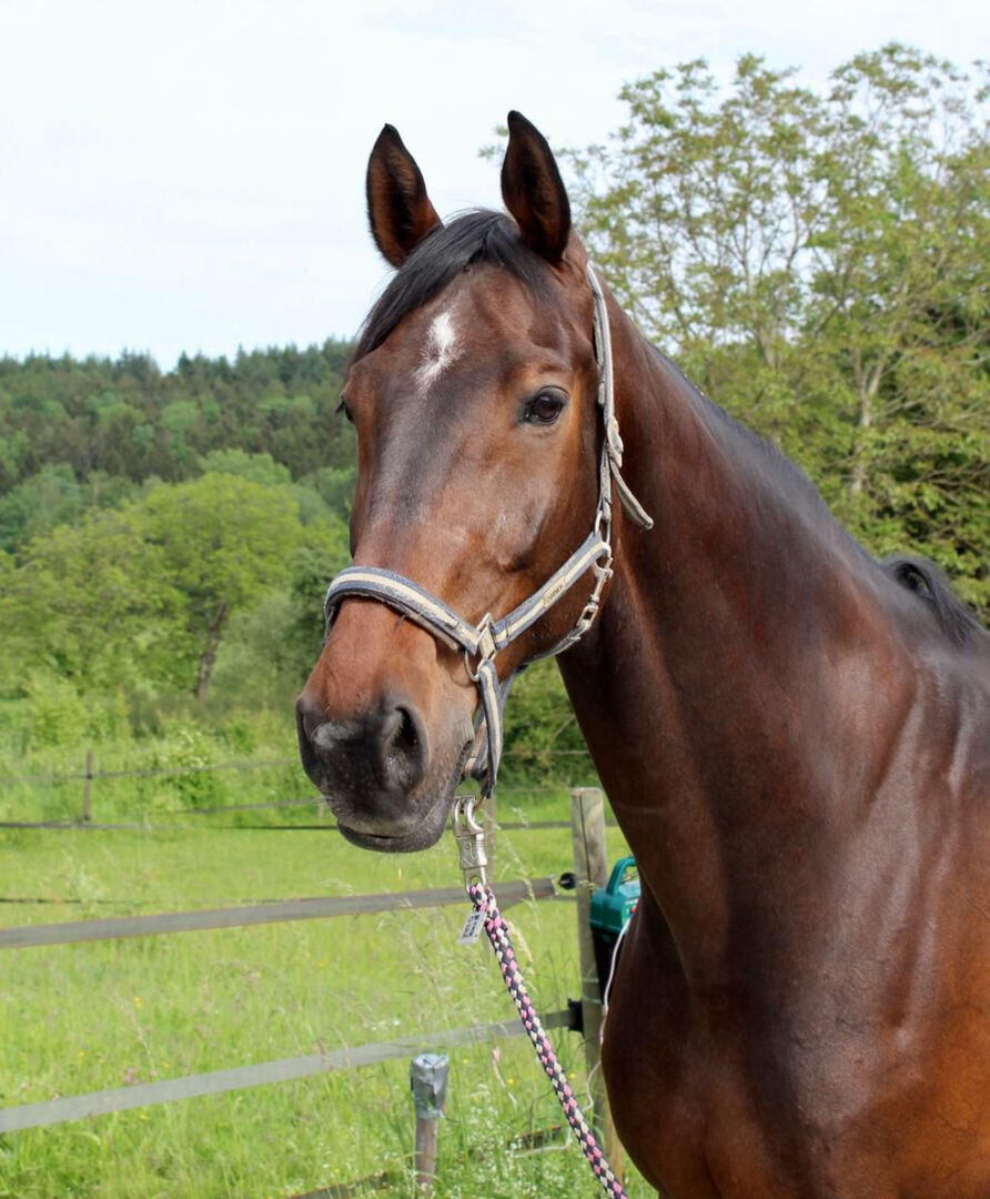 Leider muss ich mich aus zeitlichen Gründen von meinem Holsteiner Wallach Colani trennen. Im Umgang ist er brav und menschenbezogen, doch er benötigt eine konsequente und erfahrene Hand, die ihn klar führt und fördert. Er hat sehr bequeme Grundgangarten und ist ein ambitionierter Springer (Turnier Erfahrung bis Klasse M). Auch dressurmäßig ist er gut ausgebildet (bis Klasse M, jedoch ohne Turnier Erfahrung) und im Gelände ist er brav, wenn auch manchmal etwas kuckig. Einfach ein Pferd für Alles.