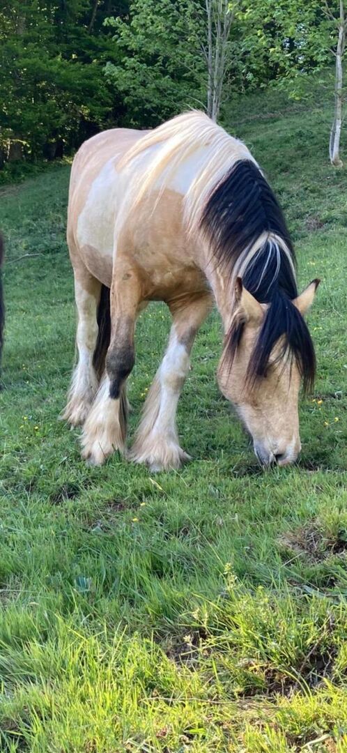 Sipatù w kwietniu skończy 6 lat. Dobrze zachowuje się w przyczepie, dobrze zachowuje się u kowala i wie, jak chodzić na spacery i wykonywać prace naziemne (podwójne lonżowanie, lonżowanie). Nosił już skórzane siodło i siedzieliśmy na nim kilka razy. Jest teraz gotowy na delikatne wprowadzenie.