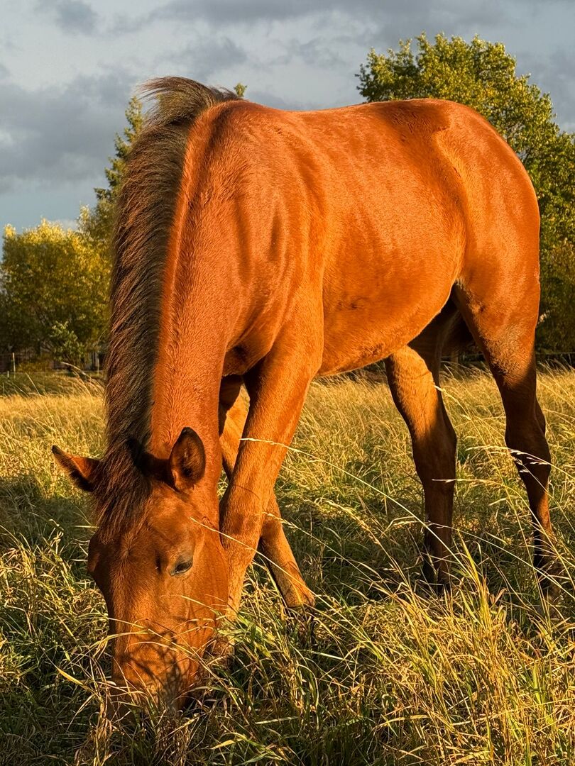 Pierwszorzędna klacz rasy Quarter/Paint Horse z potencjałem na przyszłość - Lokalizacja: 99638 Kindelbrück MD Pretty Miss Dunit - piękna klacz rasy Quarter Horse/Paint Horse urodzona 11 marca 2025 roku w eleganckim gniadym kolorze, która ma osiągnąć ostateczny wzrost ok. 150 cm. Margie jest podwójnie zarejestrowana w AQHA i APHA, jej dokumenty są już dostępne. Na wystawie źrebiąt APHA w Könnern została uhonorowana wybitną oceną 8,10 jako źrebię 1a premium i zajęła drugie miejsce w swojej klasie. Spośród 18 źrebiąt została również uznana za drugie najlepsze źrebię całego pokazu - dowód jej wysokiej jakości i ogromnego potencjału. Ta młoda klacz imponuje bardzo poprawną budową, harmonijnym umięśnieniem i doskonałym rozwojem. Jest całkowicie zdrowa, regularnie odrobaczana, szczepiona stosownie do wieku i zna zarówno swojego weterynarza, jak i kowala. Genetycznie jest dobrze zabezpieczona - jest 7-panelowa n/n, a także LWO i Splashed White n/n. Jej częściowo niebieskie oczy są szczególnie uderzające i nadają jej wyjątkowo piękny i wyrazisty wygląd. Margie dorasta w odpowiednim gatunkowo stadzie i cieszy się całodziennym wypasem. Otrzymuje wysokiej jakości paszę, która jest zoptymalizowana pod kątem rozwoju ścięgien, stawów i kości. Jest przyjazna, dobrze wychowana i spokojna w swoim codziennym zachowaniu. Jest uważna, zorientowana na ludzi i bardzo szybko się uczy. Opanowała już ABC małego źrebaka, jest wyszkolona w pracy w ręku i zna podstawowe procedury. Jej rodowód również nie pozostawia nic do życzenia: Margie pochodzi z pierwszorzędnej linii reiningowej i może startować w DQHA Futurity. Na papierze wciąż ma Colonels Smoking Gun/Remenic N Dunit/Arc Sparkle Surprise. Jej atletyczne chody i chęć do występów już teraz pokazują, że doskonale nadaje się zarówno do sportu, jak i dla ambitnego jeźdźca rekreacyjnego. Czy to jako przyszły koń pokazowy, czy jako lojalny partner do rekreacji - MD Pretty Miss Dunit łączy w sobie prawidłową budowę, sportowy potencjał i złoty charakter. Szukamy kochającego, pięciogwiazdkowego domu dla tej wyjątkowej młodej damy, najlepiej z możliwością dalszego rozwijania jej talentu w sporcie. Jest gotowa natychmiast przenieść się do nowego domu i kontynuować swoją podróż z ludźmi, którzy doceniają jej jakość.