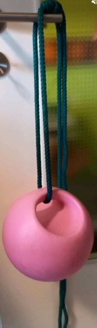 Piłka do gry dla koni, do zawieszenia - Oferuję piłkę do zabawy dla koni do powieszenia w boksie (na przykład). Piłka jest używana i nieuszkodzona.