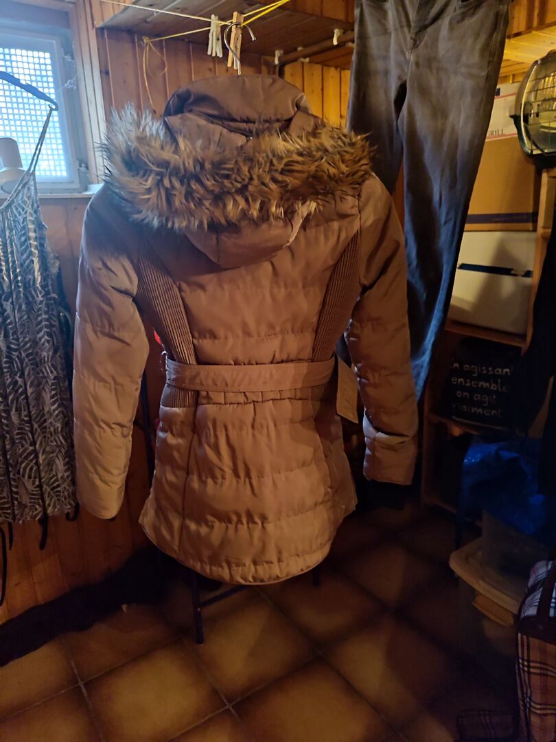 Sztuczne futro na kapturze, które można odpiąć.
