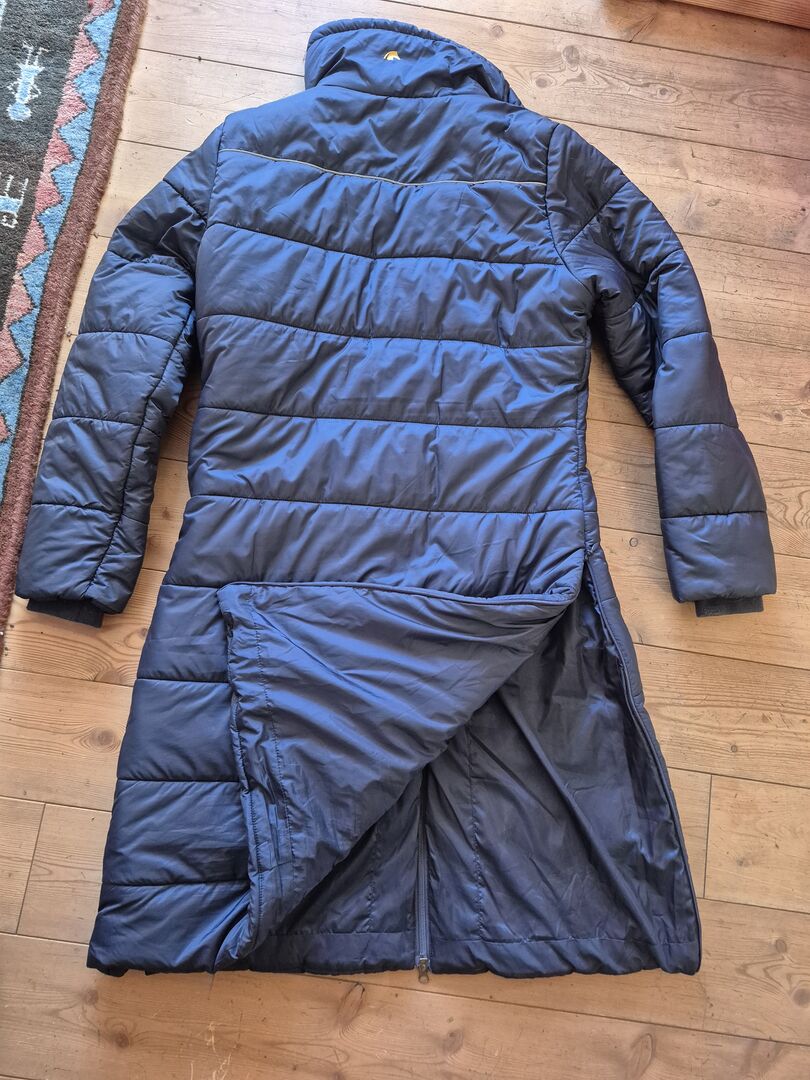 Płaszcz jeździecki zimowy, bardzo ciepły z podszewką rozmiar M Loesdau - Długi i ciepły płaszcz jeździecki Black Forest w doskonałym stanie (prawie nie noszony). Płaszcz jest ciemnoniebieski, ciepły, solidny i zapewnia optymalną ochronę i ciepło dzięki swojej długości. Długi krój, rozcięcia po bokach z zamkiem błyskawicznym. Zamek błyskawiczny z przodu. Płaszcz jest od wewnątrz wyłożony ciepłym polarem i ma 2 duże kieszenie. Bardzo odpowiedni na przejażdżki przy wietrze i pogodzie, idealny na zimne dni w stajni lub do pracy na zewnątrz. Nowa cena obecnie w Loesdau 169,99