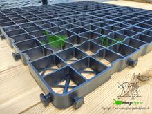 Dane techniczne: - Wymiary: 50 × 50 × 4 cm - Materiał: tworzywo sztuczne z recyklingu (PE/PP) - Kolor: czarny - Zapotrzebowanie: ok. 4 sztuki/m² - Materiał wypełniający: piasek, żwir lub ziemia