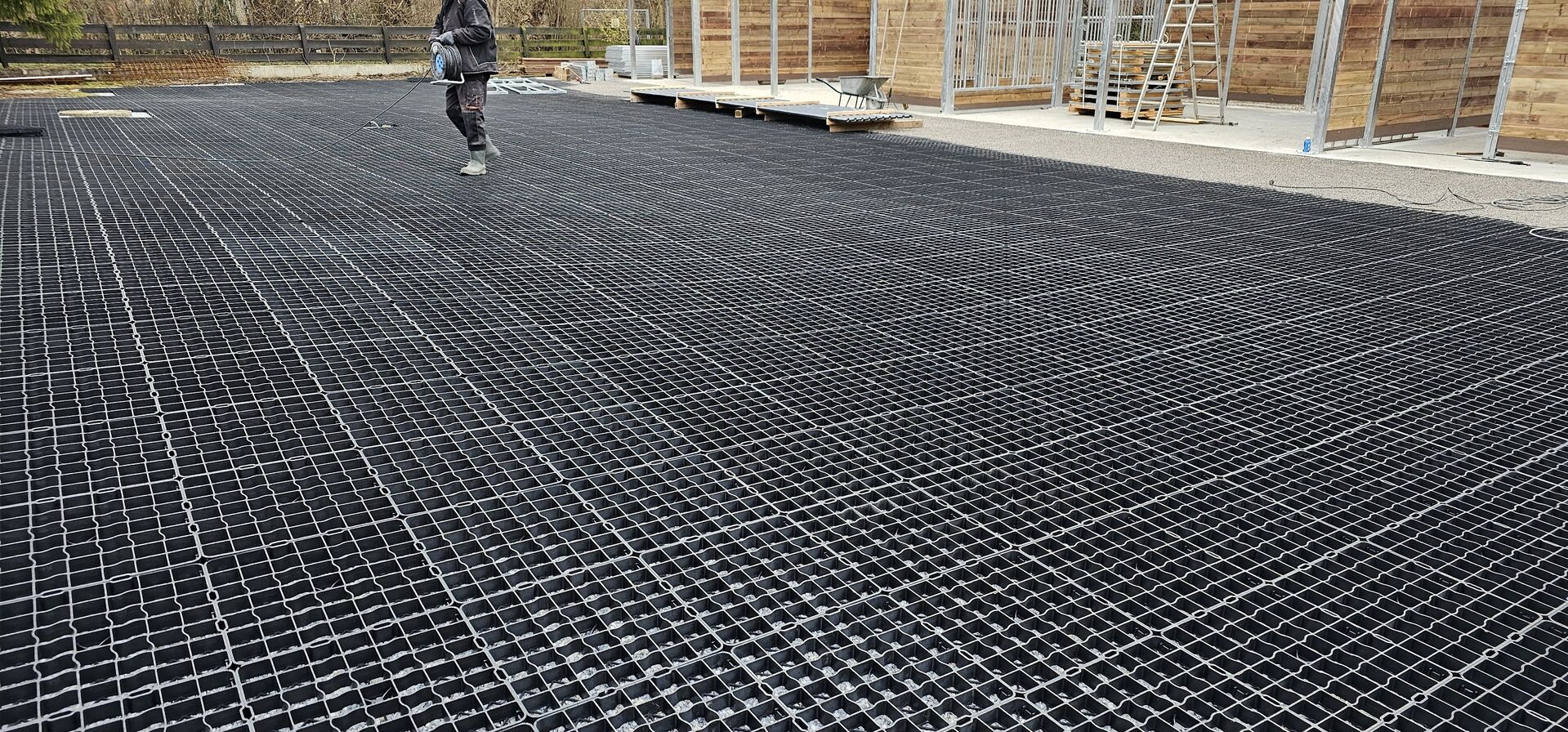 Maty gumowe i maty stajenne dla koni, krów i świń Kraty darniowe i płyty padokowe Płyty podłogowe i ruszty żwirowe