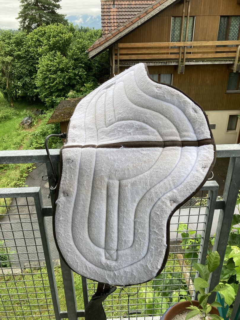 Podkładka do jazdy konnej na grzbiecie - Na sprzedaż podkładka do jazdy na oklep z popręgiem. Podkładka jest w doskonałym stanie. Pasuje na każdego konia, czy to haflingera, hanowera czy fryza. Super wygodne. Sprzedawany tylko dlatego, że przestałem jeździć. Pierwotnie kupiłem pad za 350 franków. Obwód ma 65 cm długości. Nadaje się zarówno dla dzieci, jak i dorosłych. Pożądana cena wynosiłaby 150 franków, ale podlega negocjacji.