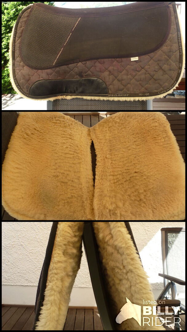 Podkładka Grandeur Physio Pad z prawdziwej skóry jagnięcej - W okazyjnej cenie: Grandeur Western pad Physio w kolorze czarnym. Długość mierzona z boku: 70 cm Cecha szczególna: Spód tego ochraniacza jest wykonany z prawdziwej skóry jagnięcej! Duże kieszenie zawierają wyższej jakości (drogie) wkładki filcowe. Anatomiczny kształt podkładki i zintegrowany kanał kręgowy (klimatyzacja) utrzymują kręgosłup konia wolny i wentylowany od przodu do tyłu. Przyczepność materiału siatkowego na górnej stronie zapewnia optymalną odporność na poślizg. Podkładka Grandeur została zaprojektowana tak, aby pozostać bezpiecznie umieszczona i utrzymać siodło na miejscu nawet podczas aktywnej jazdy. Duże kieszenie po wewnętrznej stronie podkładki pozwalają na dodanie wyściółki w razie potrzeby! Na przykład, ta podkładka może być użyta do stworzenia optymalnej kompensacji dla jednostronnego muskulatury. Ślady użytkowania widoczne na zdjęciach! Z przyjemnością odpowiem na wszelkie pytania. Powierzchnia: mikrofibra - anatomiczny krój - antypoślizgowa powierzchnia - efekt amortyzacji i pochłaniania wstrząsów - wentylacja kręgosłupa - można prać w pralce w temperaturze do 40° - podwójne rozcięte kieszenie
