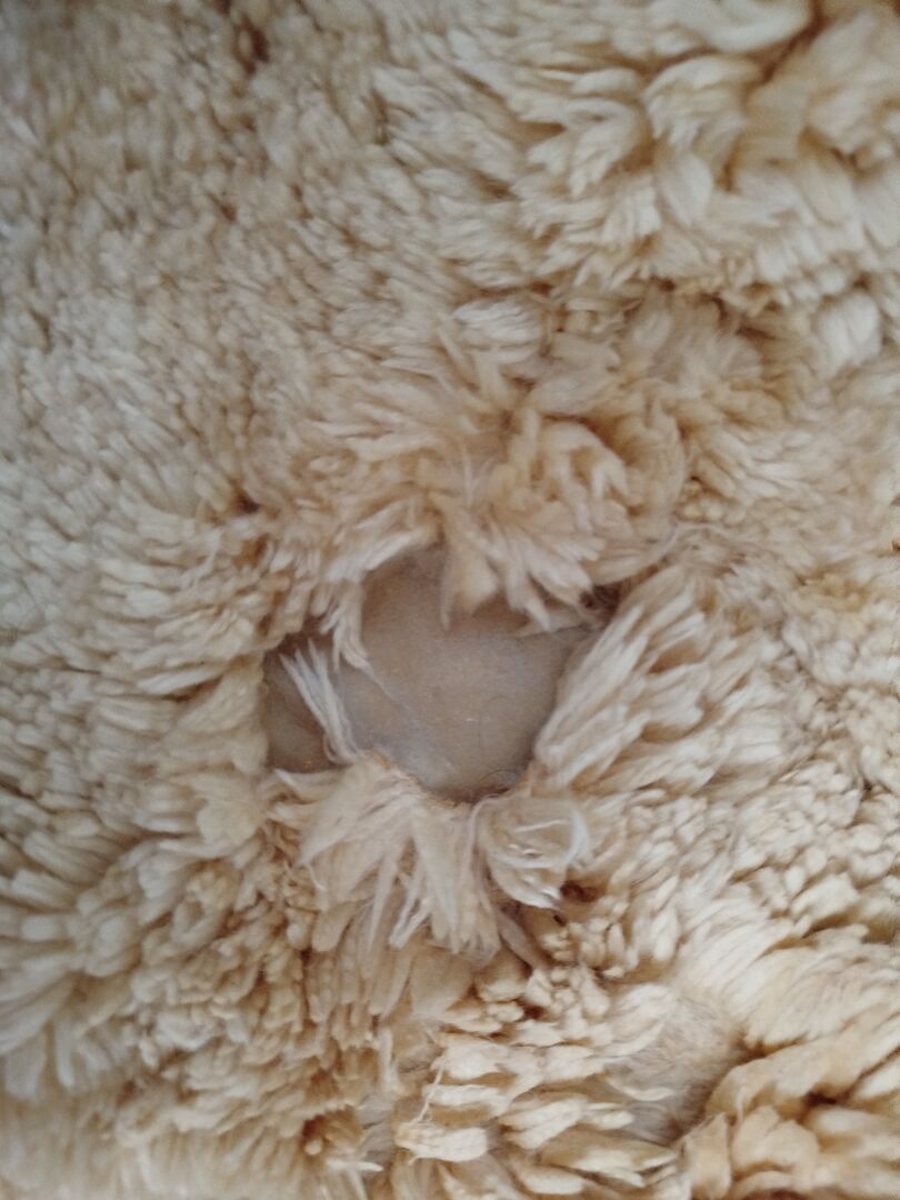Podkładka korekcyjna z futerkiem Kavalkade - na sprzedaż poduszka futrzana / korekcyjna firmy Kavalkade w rozmiarze L, świeżo wyprana. Ma małą dziurę na górze i brakuje trochę futra na dole (patrz zdjęcia)