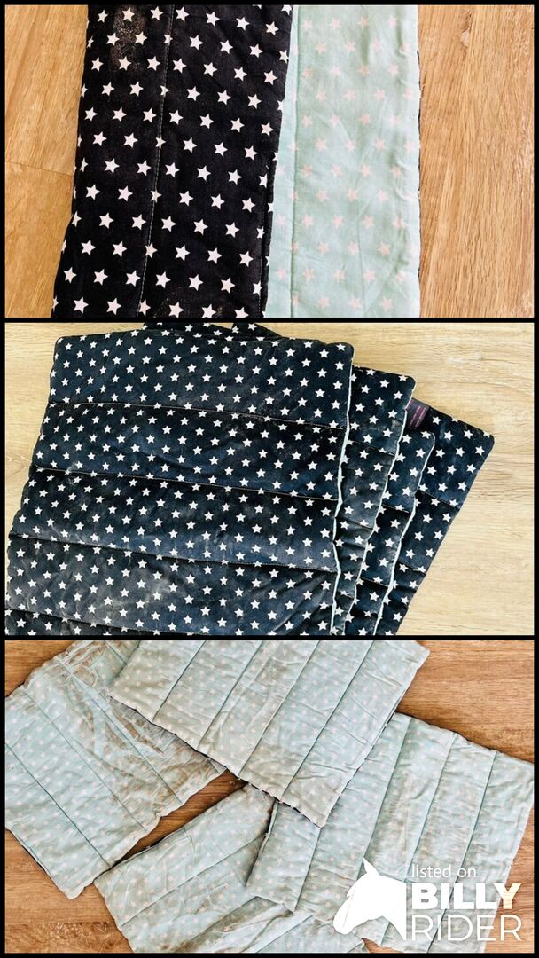 Podkładka pod bandaż / 4x / kucyk / dwustronna - Miałam te podkładki zrobione dla mojej Walijki A. Były używane. Były używane, dlatego podkładki mają kilka śladów potu na jasnej stronie, gdzie jest nad nią bandaż. Ale poza tym nie są uszkodzone.