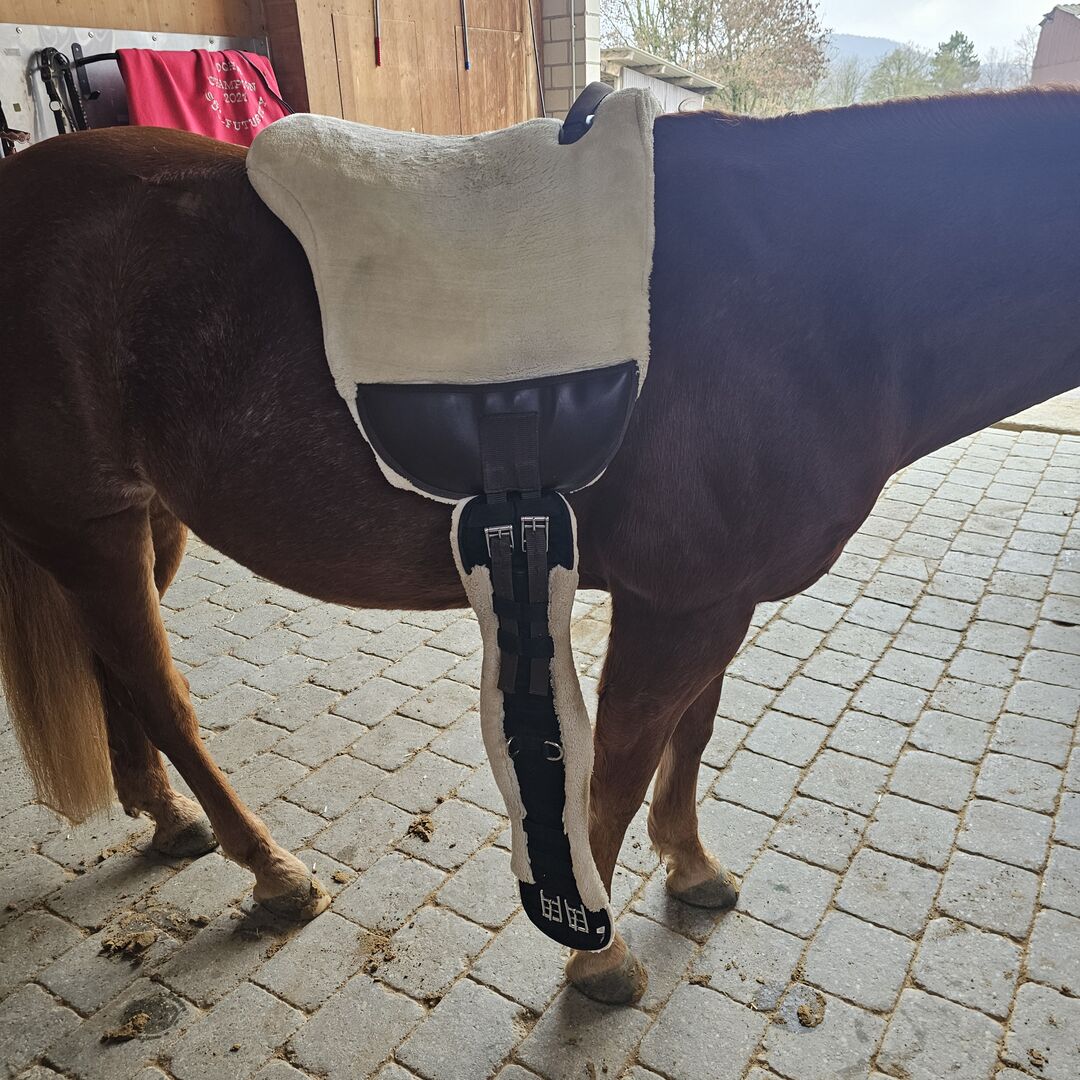 Podkładka pod plecy - Sprzedaję bardzo wygodny ochraniacz na goły grzbiet wraz z popręgiem, stan bardzo dobry.