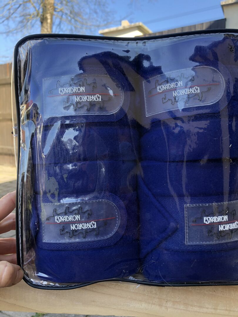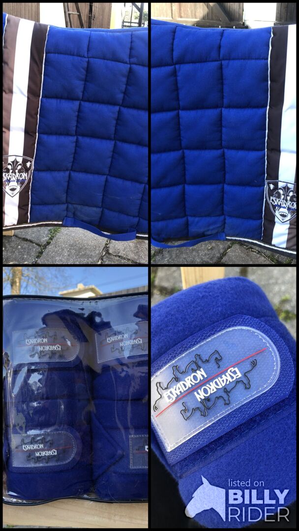 Podkładka pod siodełko + bandaże Eskadron - Na sprzedaż jest podkładka pod siodło i bandaże. Stosuje się podkładkę pod siodło. Bandaże są nowe i nieużywane!