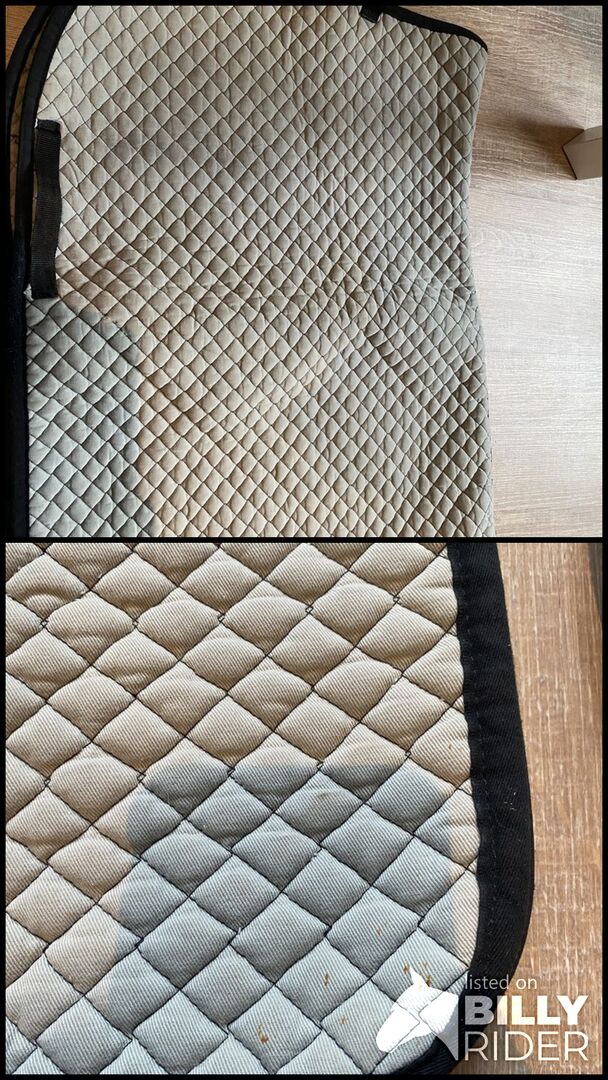 Podkładka pod siodło - Sam mam podkładkę pod siodło z drugiej ręki. Nie mogę więc nic powiedzieć o rozmiarze ani marce. Ale myślę, że powinien to być cob lub pony. Na dole są małe posypki, jak widać na drugim zdjęciu. Nie mam z nich żadnego pożytku, więc je oddaję