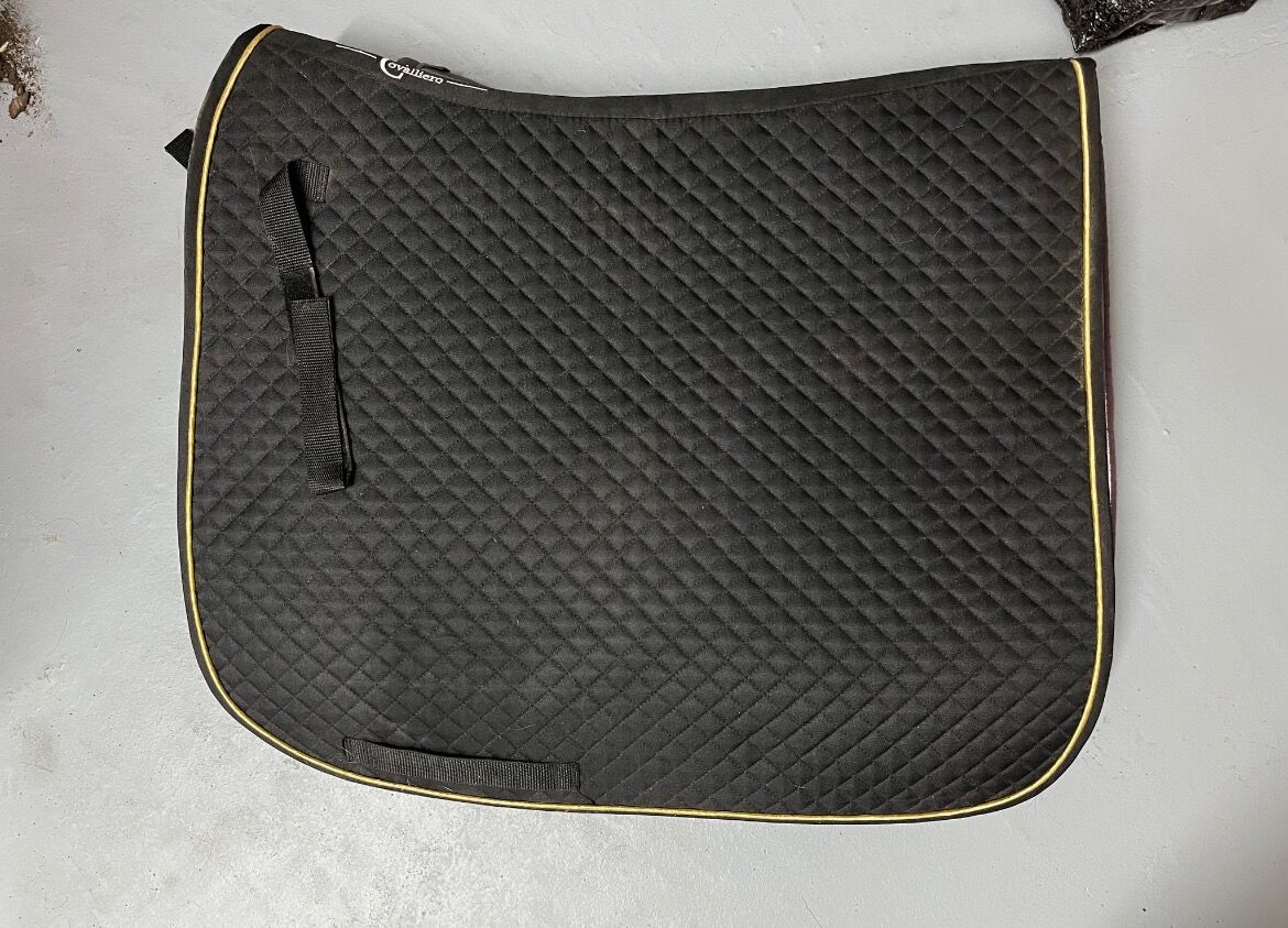 Podkładka pod siodło - Oferuję na sprzedaż podkładkę pod siodło ujeżdżeniowe w bardzo dobrym stanie. Był używany tylko kilka razy i dlatego jest w doskonałym stanie. Przed sprzedażą pad zostanie wyprany.