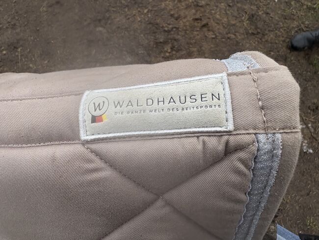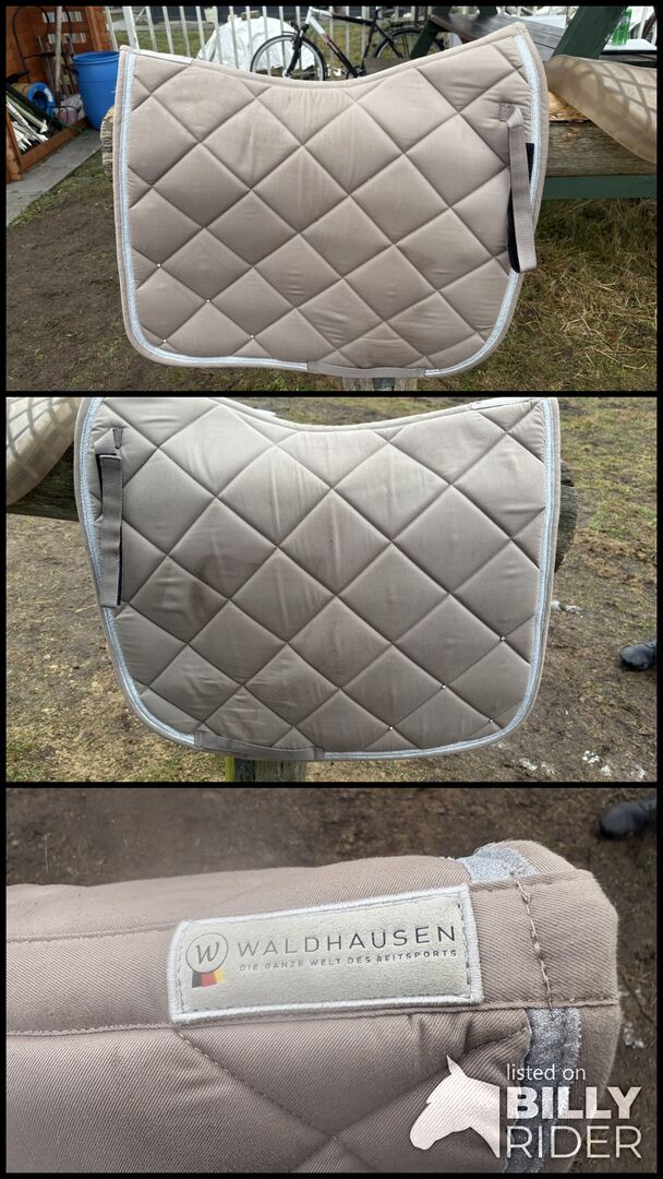 Podkładka pod siodło COMPETITION z brokatem, dżetami, taupe/gold DR - Mało używana podkładka pod siodło, tylko trochę zakurzona. Poza tym bez uszkodzeń.