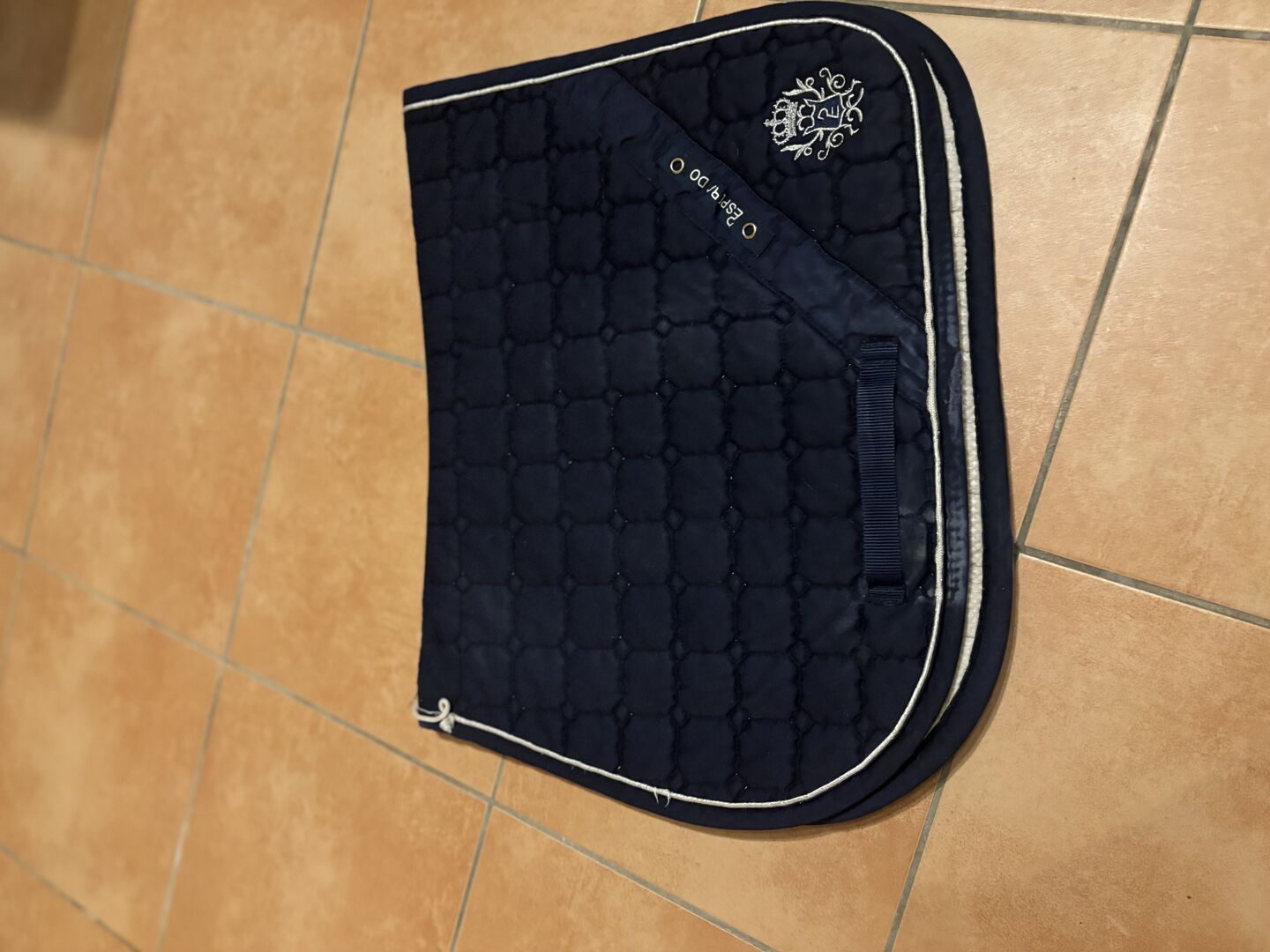 Podkładka pod siodło dla kucyka - Oferuję podkładkę pod siodło skokowe dla kucyka firmy Esperado w kolorze niebieskim. Niestety krawędź jest trochę przetarta, ale można to naprawić.