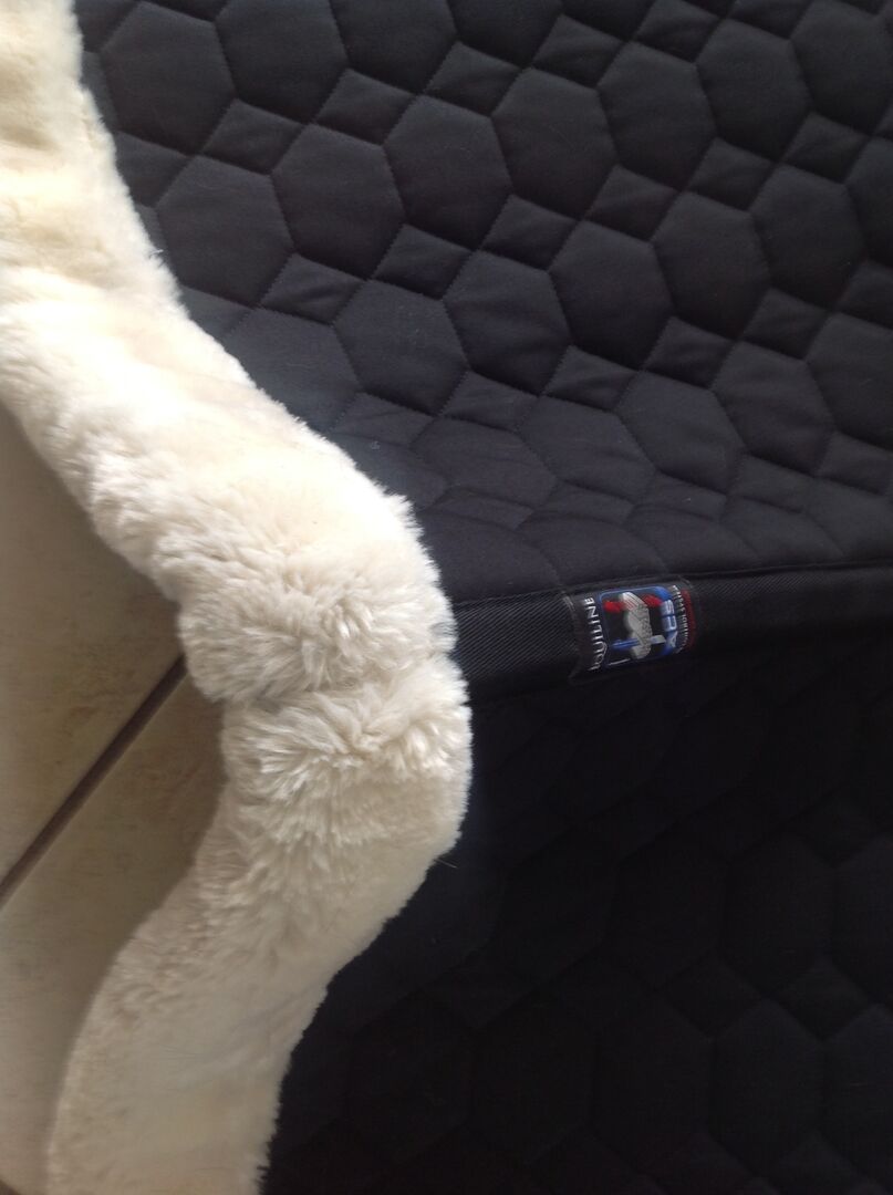 PODKŁADKA POD SIODŁO EQUILINE SNUGGLY DRESSAGE - PRZYTULNA PODKŁADKA POD SIODŁO UJEŻDŻENIOWE KOLOR: CZARNY EKOLOGICZNE FUTRO JAGNIĘCE ODDYCHAJĄCE amortyzacja wstrząsów 65% POLIESTER 35% BAWEŁNA MOŻNA PRAĆ W PRALCE W TEMPERATURZE DO 30 STOPNI NOWA CENA 162,00 EURO