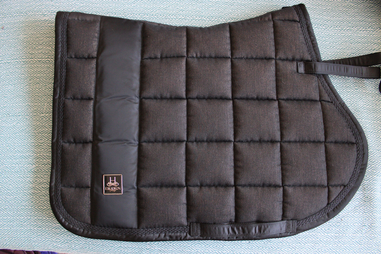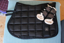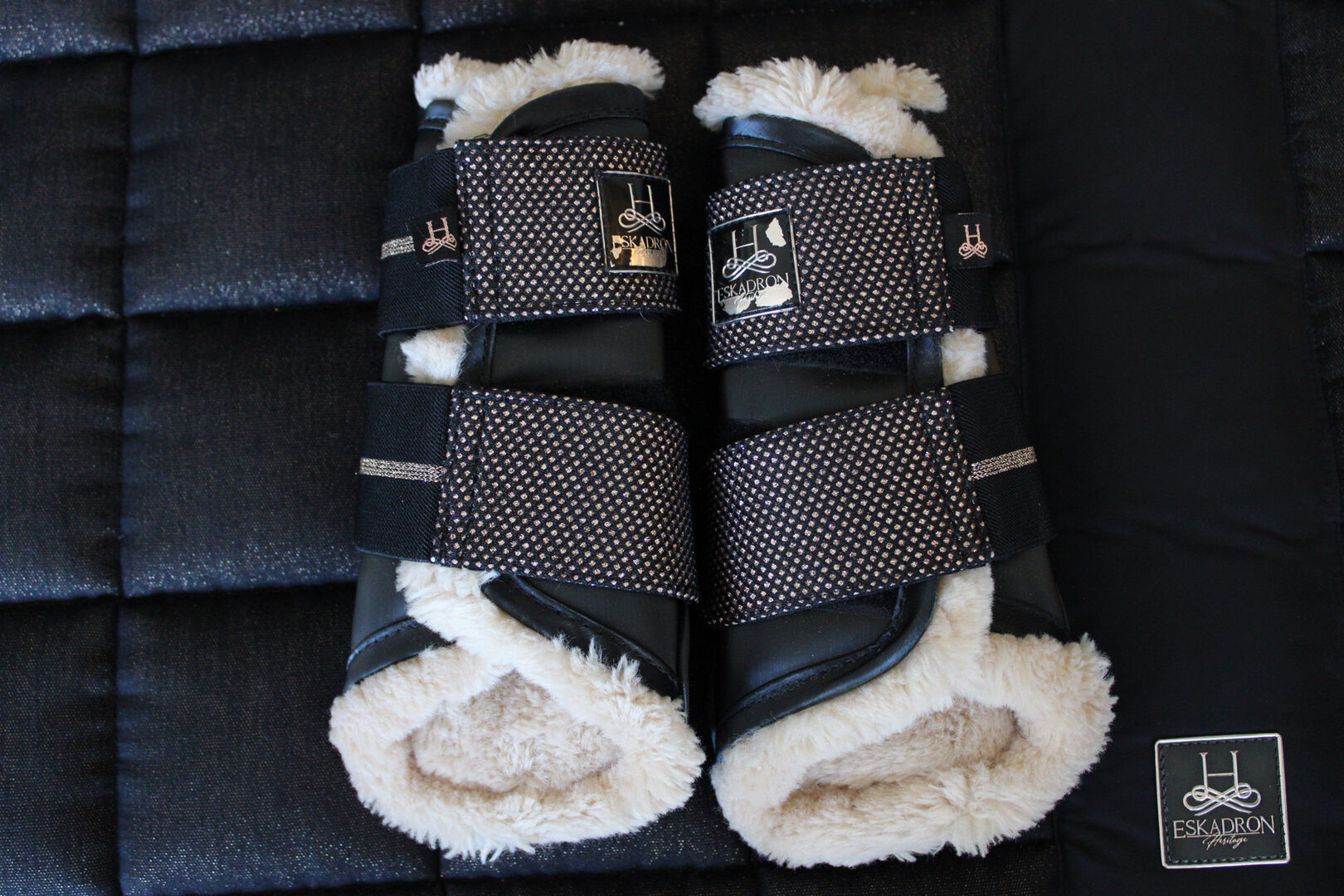 Podkładka pod siodło Eskadron czarny brokat VS + pasujące getry w rozmiarze S - Na sprzedaż jest absolutnie nowa podkładka pod siodło Eskadron Heritage w kolorze czarnym z brokatem i pasującymi getrami w rozmiarze S, również jak nowa.