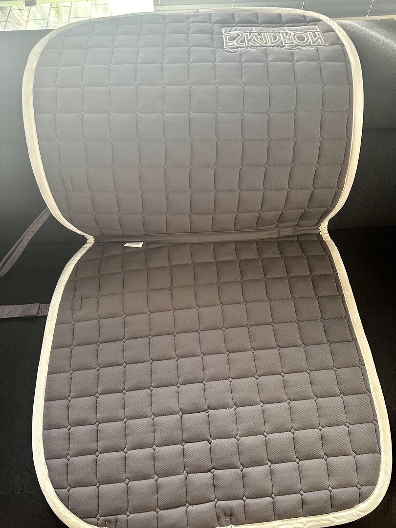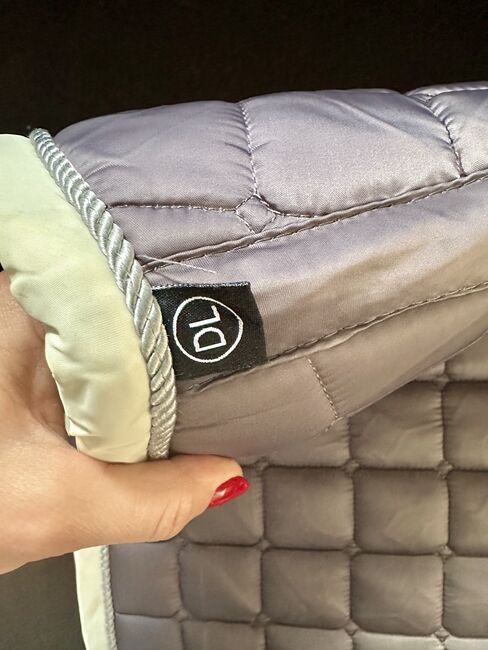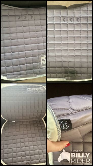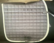 Podkładka pod siodło Eskadron Glossy Crystal DL Warmblood Dressage Pad - Na sprzedaż podkładka pod siodło jak nowa. Wszystkie kamienie nadal obecne, tylko buty niestety trochę się odbarwiły w okolicy popręgu.