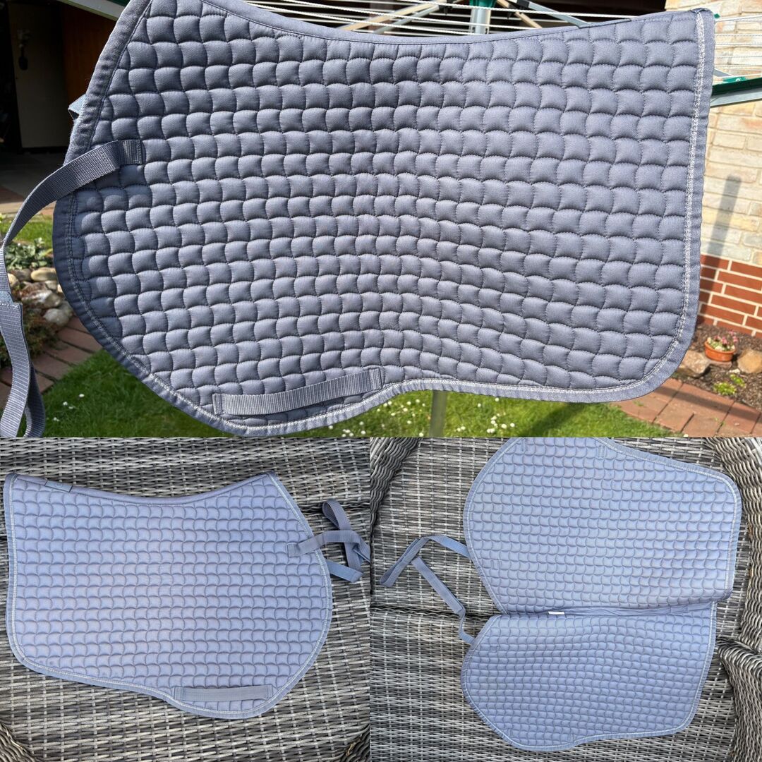 Podkładka pod siodło Eskadron VS w kolorze doveblue - Na sprzedaż jest podkładka pod siodło od Eskadron w kolorze doveblue wszechstronność był na koniu tylko dwa razy, ponieważ pad niestety nie pasuje idealnie pod siodło.