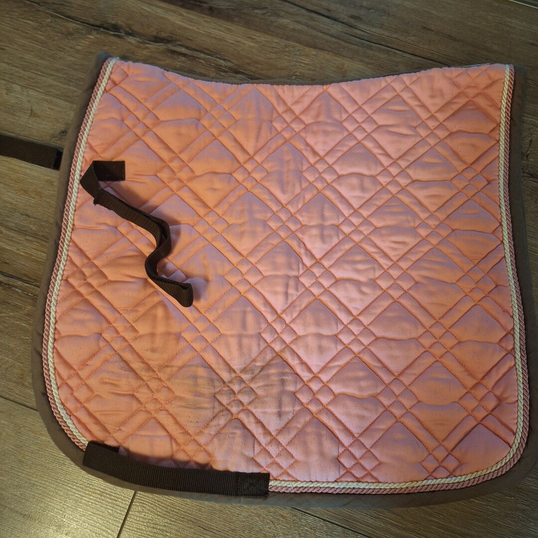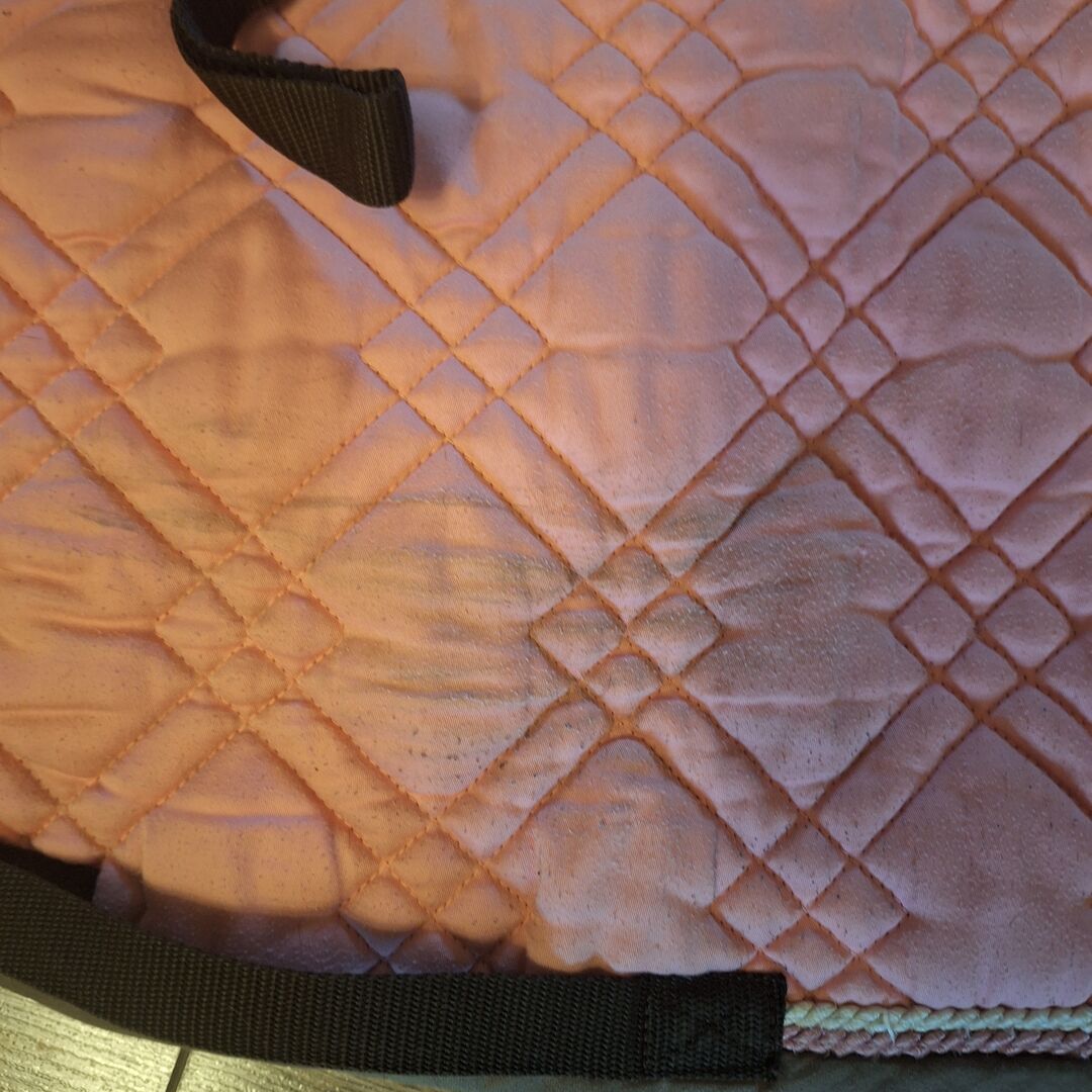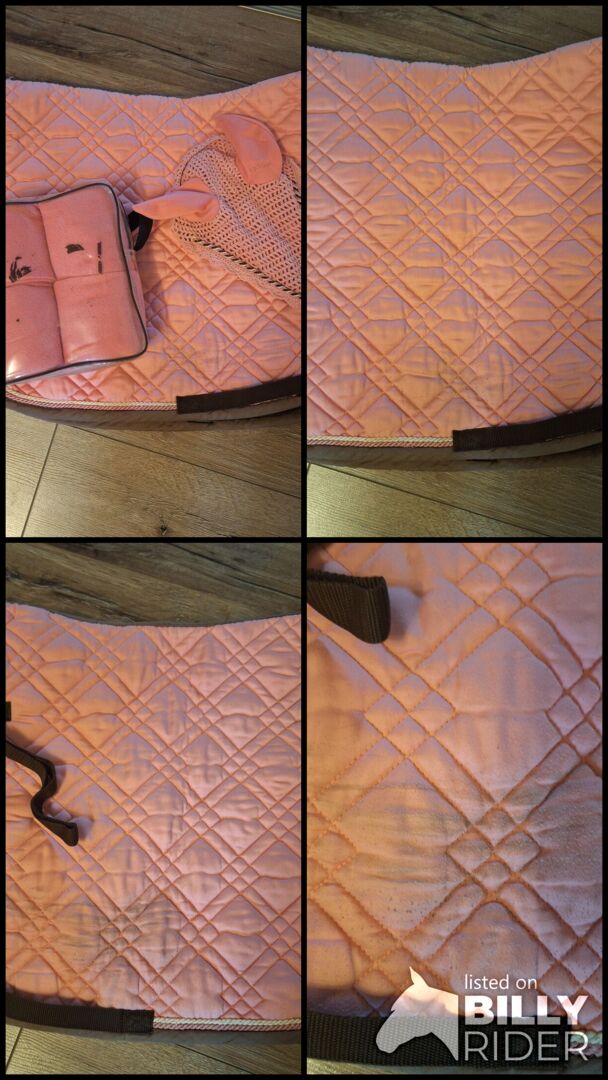 Podkładka pod siodło Eskadron z bandażami i maską na muchy Pink Pink - Sprzedaję ten używany zestaw. Zdjęcia nie są w pełni zgodne z kolorem. Podkładka pod siodło ma niewielkie ślady po siodle.