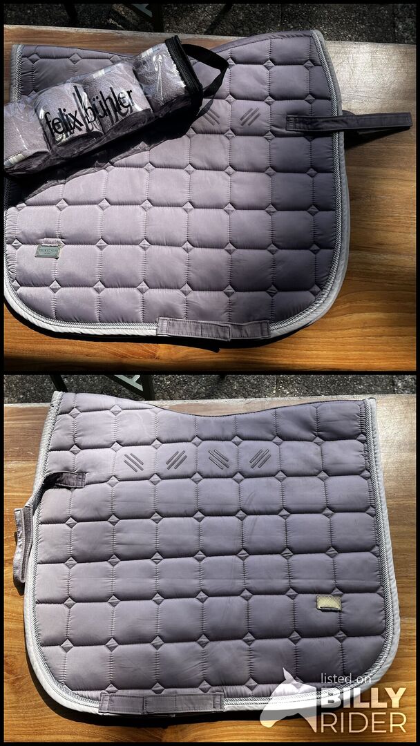 Podkładka pod siodło Felix Bühler + bandaże - Na sprzedaż podkładka pod siodło Felix Bühler wraz z bandażami w kolorze fioletowym. Był na koniu nie więcej niż cztery razy. Nowa cena podkładki pod siodło wynosi 54,90 €, a bandaży 11,45 €.