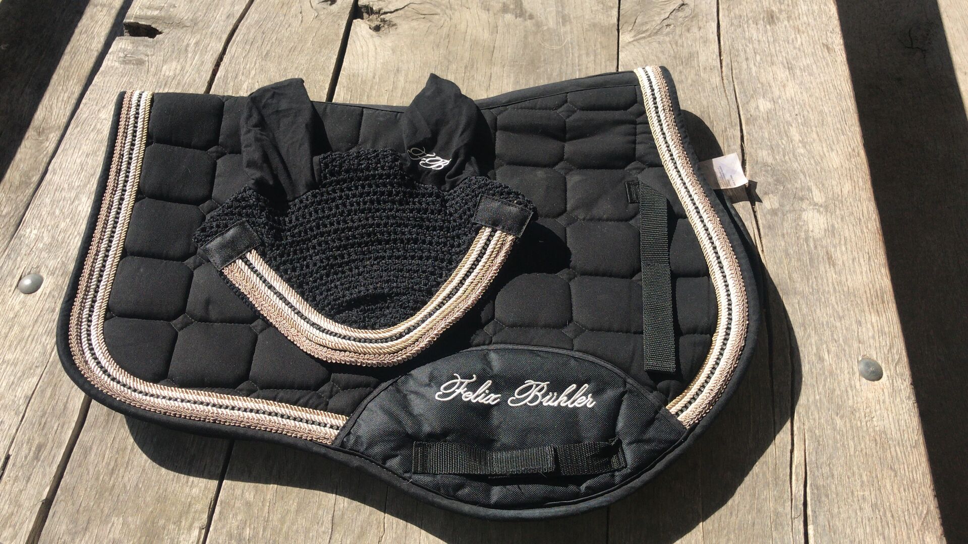 Podkładka pod siodło Felix Bühler + kaptur Fly Hood - Sprzedam podkładkę pod siodło Felix Bühler w rozmiarze VS oraz pasującą do niej maskę na muchy. Podkładka pod siodło była używana 3-4 razy, a maska na muchy tylko 1 raz! Czyli wszystko jak nowe :)