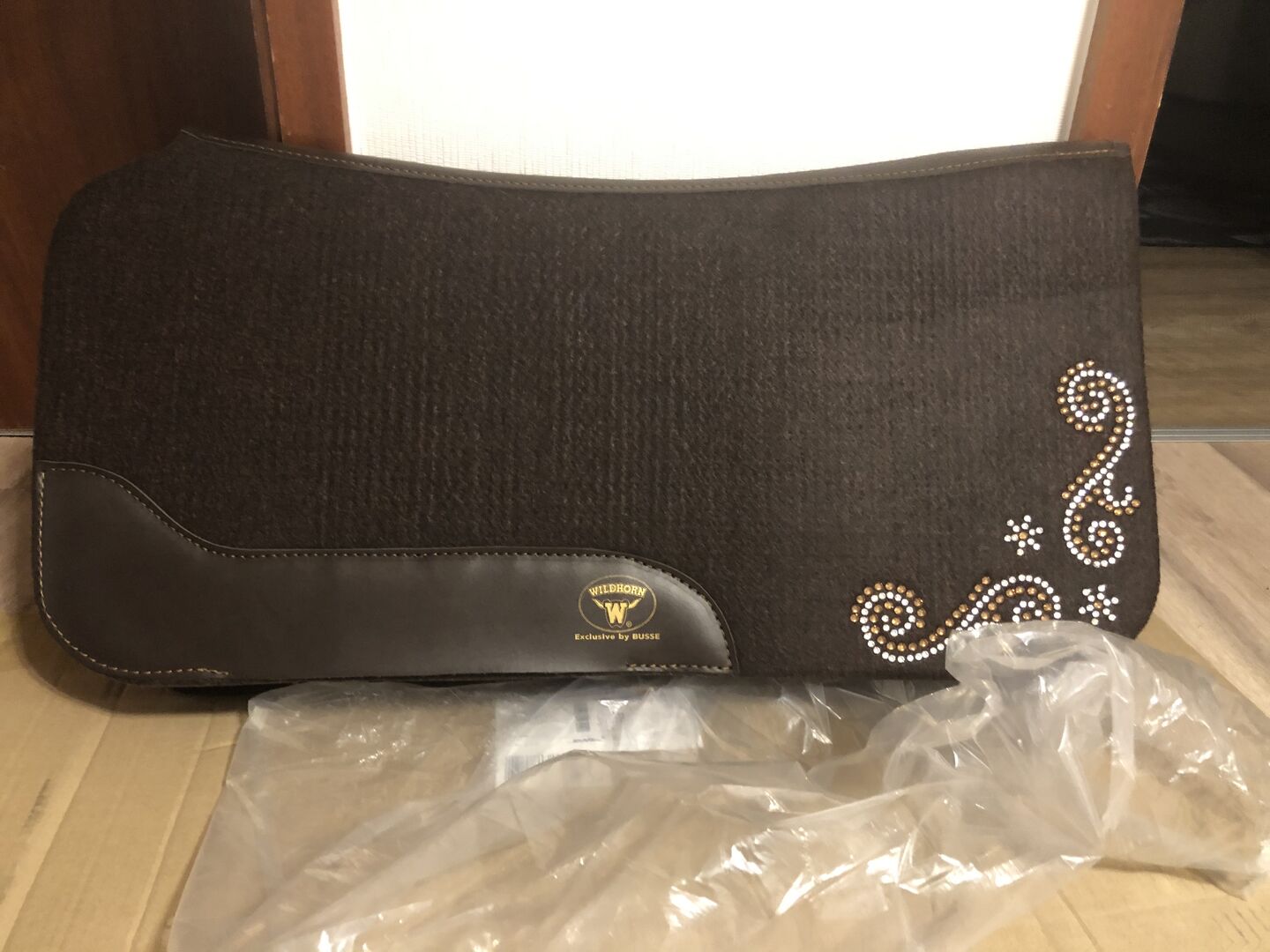 Podkładka pod siodło filc zachodni - Nowy i nieużywany ochraniacz na siodło firmy Busse w kolorze brązowym z błyszczącymi kamieniami filcowymi.