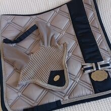 Podkładka pod siodło i maska na muchę Equifinity - Bardzo ładny pad pod siodło z błyszczącymi kamieniami. Bardzo dobry do codziennego użytku z zapięciem na rzep wokół pasków popręgu. Świeżo wyczyszczony, bardzo mało używany, dlatego prawie jak nowy. Pasująca maska na muchy z błyszczącymi kamieniami. Bardzo dobra jakość. Można kupić jako zestaw lub pojedynczo. Cena dotyczy zestawu bez kosztów dostawy. Mogę również wysłać przedmioty pocztą, w takim przypadku zostaną doliczone koszty wysyłki DHL