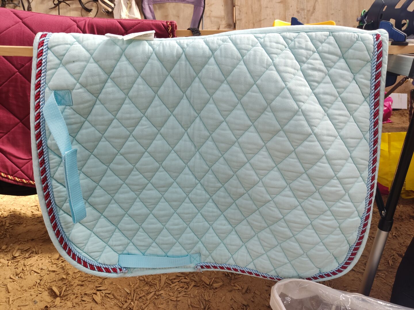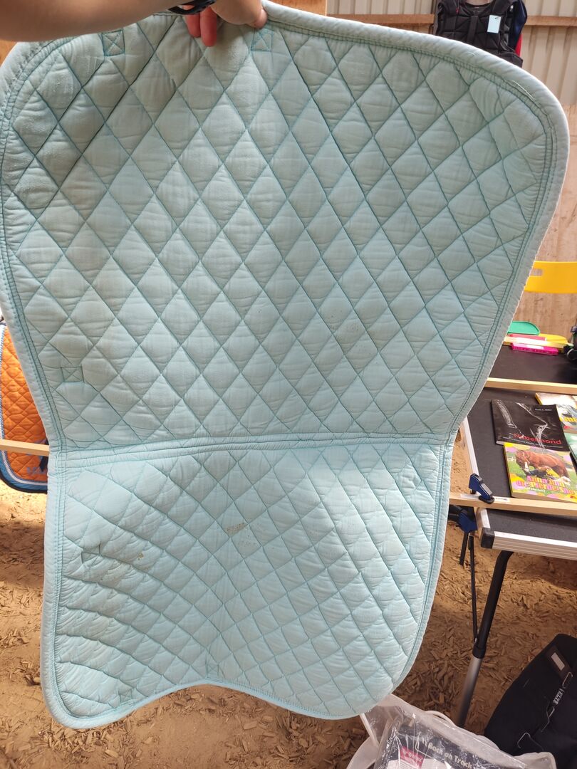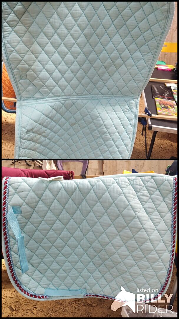 Podkładka pod siodło jasnoniebieska ze sznurkiem - Używany, dobrze zachowany pad pod siodło w kolorze jasnoniebieskim z czerwonym sznurkiem