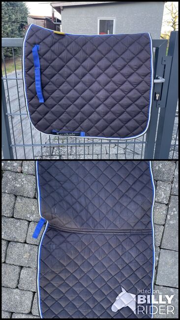 Podkładka pod siodło Kavalkade - Na sprzedaż jest czarny pad ujeżdżeniowy Kavalkade z niebiesko-białą lamówką.