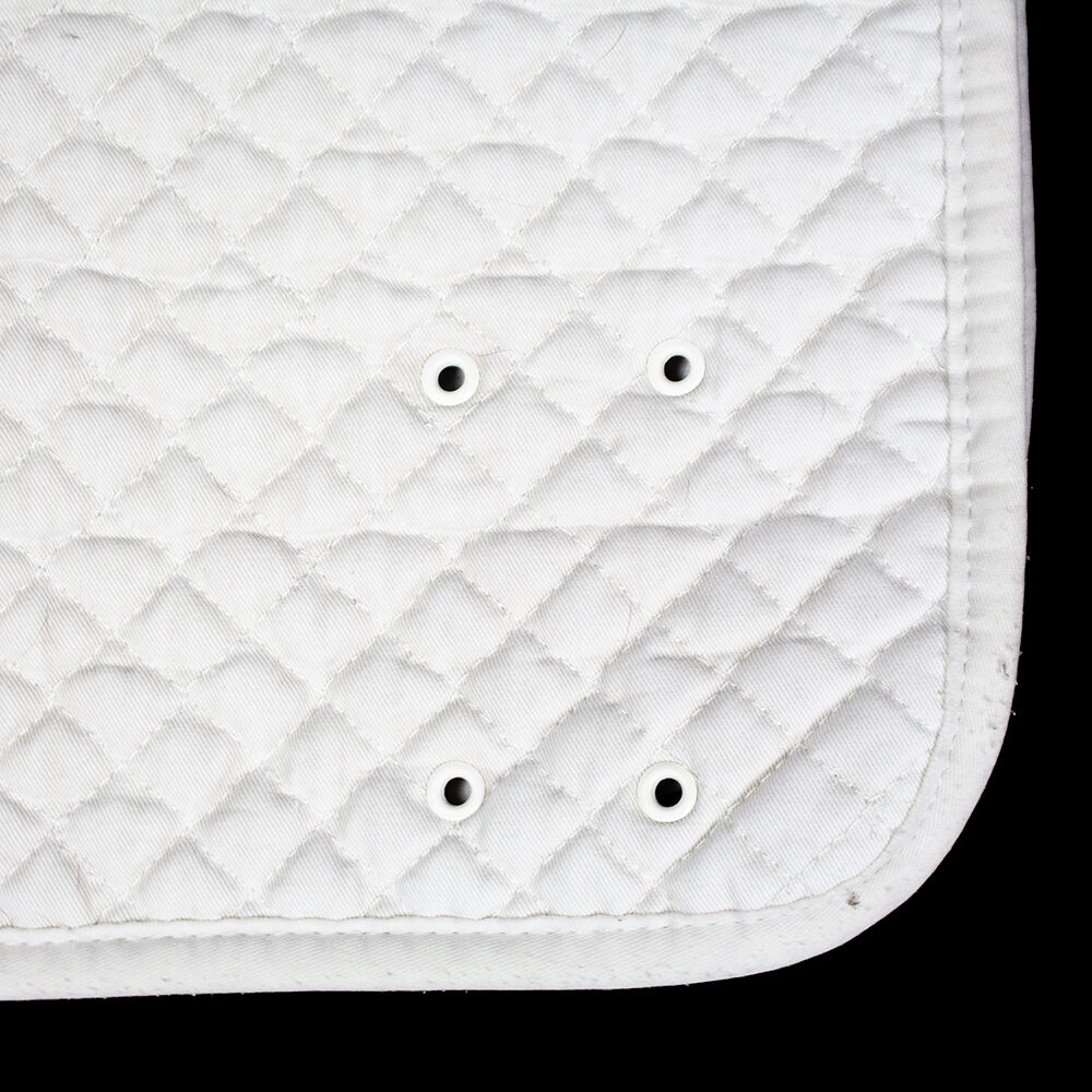 Podkładka pod siodło Kavalkade z oczkami do numerów startowych biała DR - Ta piękna i klasyczna podkładka pod siodło ujeżdżeniowe Kavalkade jest idealna jako podkładka pod siodło konkursowe dzięki praktycznym oczkom na numery startowe. Biała podkładka pod siodło ma niestety niewielkie odbarwienia na górnej i dolnej części oraz ogólne ślady zużycia. To the seller's offerlaunch