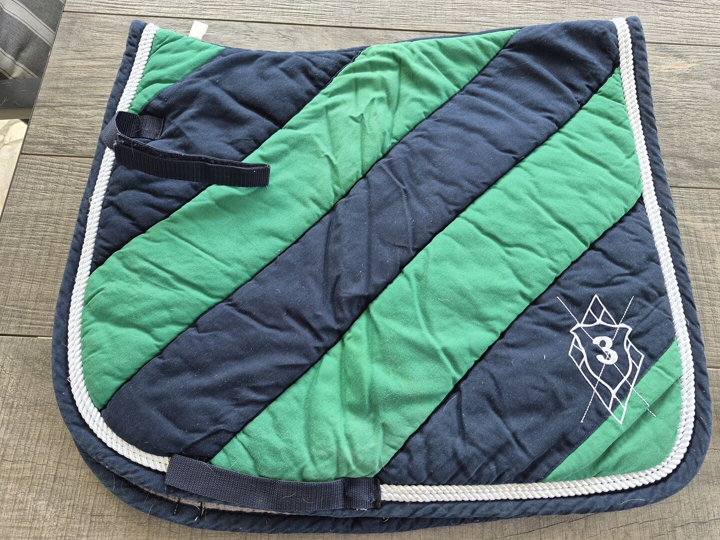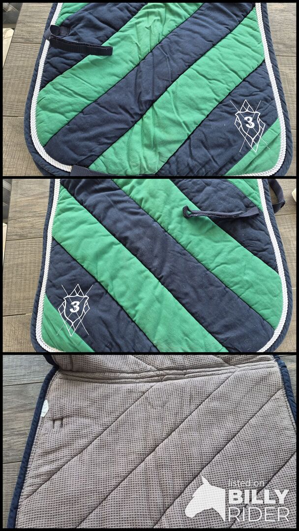Podkładka pod siodło Loesdau w kolorze zielonym/niebieskim i rozmiarze DR - Sprzedam zielony/niebieski pad pod siodło w dobrym stanie od Loesdau w rozmiarze WB dressage.