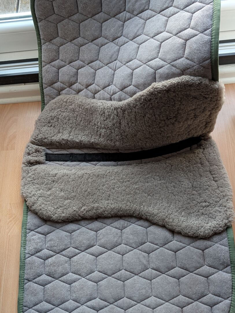 Podkładka pod siodło Mattes rozmiar L ujeżdżeniowa khaki - Sprzedam zadbaną podkładkę pod siodło ujeżdżeniowe Mattes w kolorze khaki, rozmiar L.