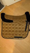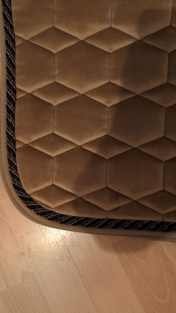 Podkładka pod siodło Mattes velvet rozmiar L ujeżdżenie - Sprzedam podkładkę pod siodło ujeżdżeniowe Mattes w rozmiarze L w kolorze złotobrązowym, pikowana tkanina aksamitna