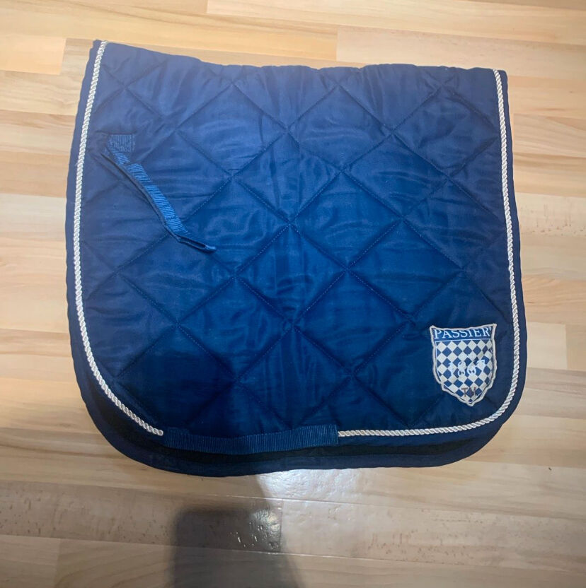 Podkładka pod siodło Passier Dressage - Na sprzedaż jest dobrze zachowany pad ujeżdżeniowy Passier w kolorze ciemnoniebieskim. Widać ślady zużycia i kilka włosów, które już nie odpadają.