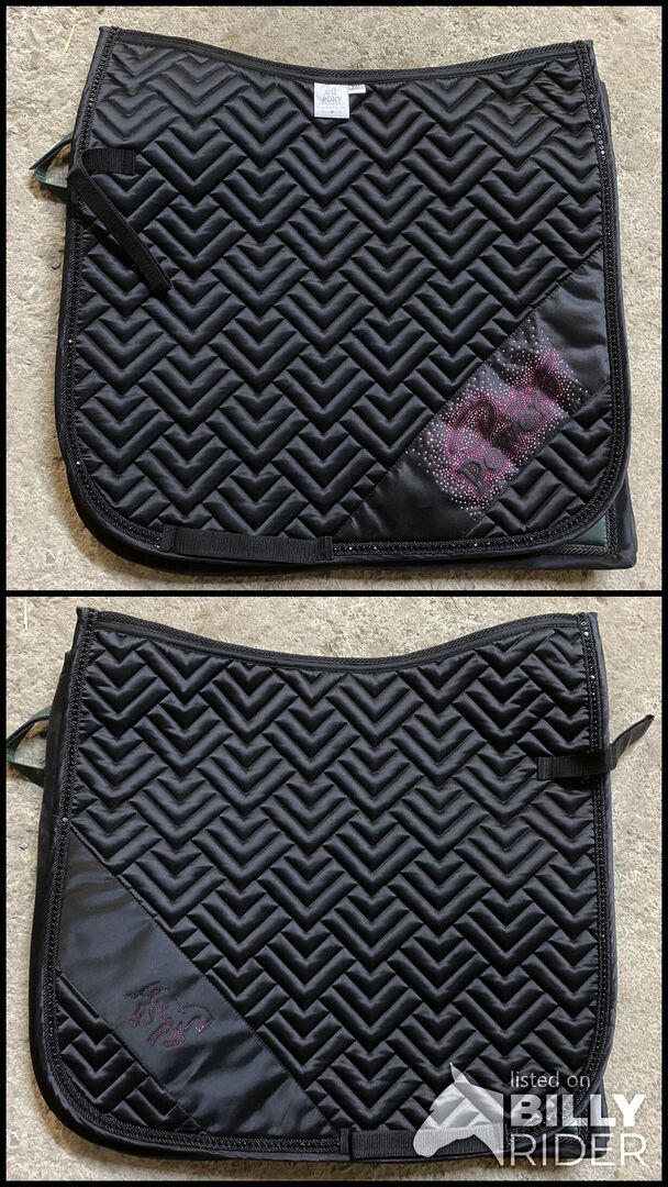 Podkładka pod siodło Pony sister czarna/różowa DR - Oferuję nieużywaną, a więc nową podkładkę pod siodło marki Ponyschwester. Kolor: czarny z różowymi kamieniami; Rozmiar: DR