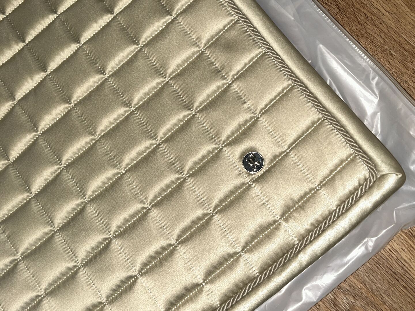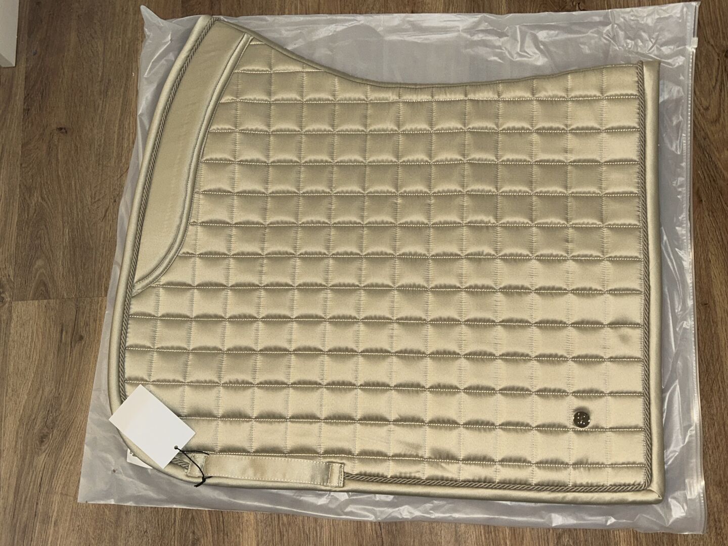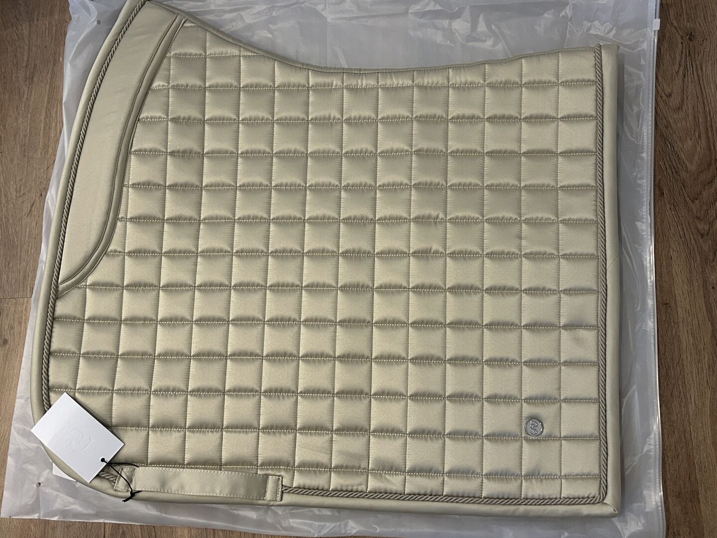 Podkładka pod siodło Ps of Sweden beżowa kremowa złota ciemna kość słoniowa wb ujeżdżenie dl nowa - Na sprzedaż nowa podkładka pod siodło od Ps of Sweden Kolor beżowy ze złotym ściegiem "ciemna kość słoniowa" rozmiar wb dressage
