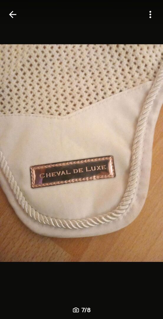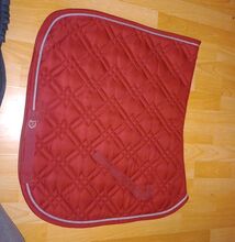 Podkładka pod siodło Ridersdeal czerwona/ciemnoczerwona ze srebrnym sznurkiem - Podkładka pod siodło Ridersdeal w pięknym nieco ciemniejszym czerwonym kolorze ze srebrnym sznurkiem w DR/Full. Podkładka pod siodło była na koniu tylko raz, więc jest jak nowa. Nie ma żadnych uszkodzeń. Uszy muchowe w WB (białe z różowym złotem Lugo z cheval DE luxe) oddam bezpłatnie - widać je na zdjęciach i oczywiście zostaną wyprane przed oddaniem. Możliwa wysyłka po opłaceniu kosztów lub odbiór w Recklinghausen. Sprzedaż prywatna, dlatego nie ma gwarancji, gwarancji ani zwrotu.