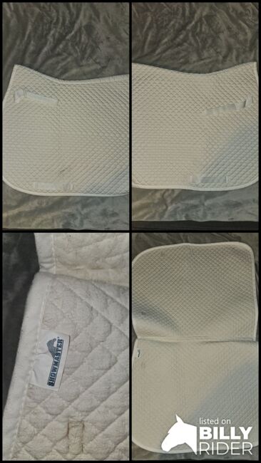Podkładka pod siodło Showmaster ujeżdżeniowa biała 1x używana - Podkładka pod siodło Showmaster, ujeżdżeniowa, biała, używana tylko raz, minimalne ślady zużycia, patrz zdjęcia.