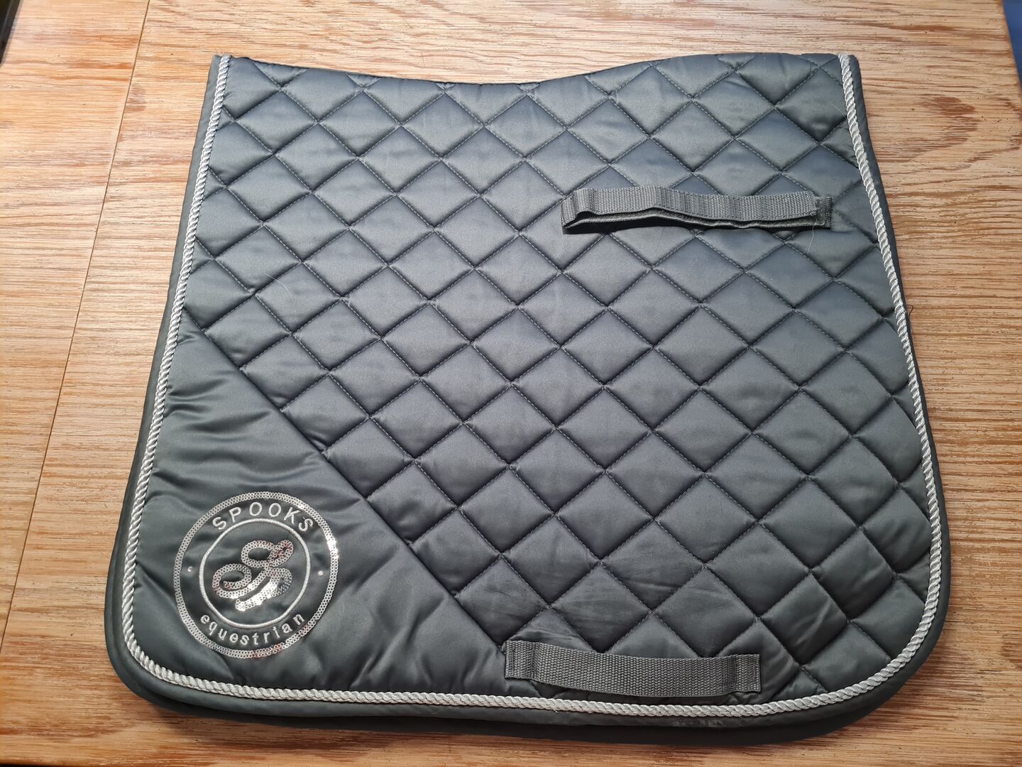 Podkładka pod siodło SPOOKS, DL, szara z dżetami - Sprzedam podkładkę pod siodło SPOOKS, rozmiar WB, DL w kolorze szarym.z dżetami. Wszystkie dżetów są obecne. Jeden pasek do obwodu jest rozdarty, ale można go bez problemu przyszyć. Cena wraz z wysyłką