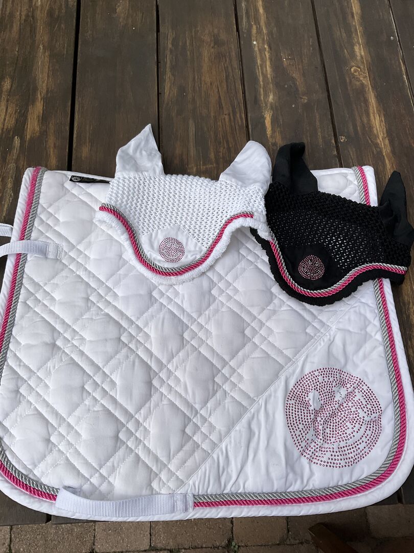 Podkładka pod siodło turniejowe z Fly Ears - Piękna podkładka pod siodło z buźką, była używana tylko na kilku pokazach, pasujące uszy muchy